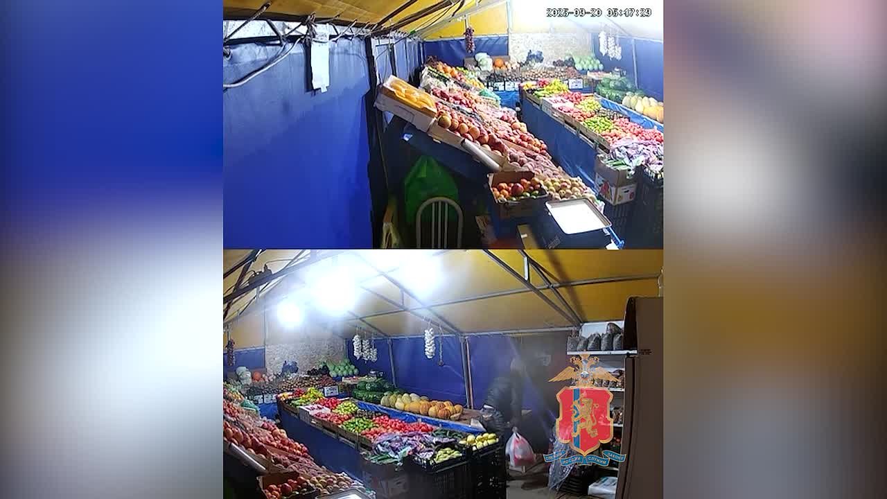 Полицейские установили, что подозреваемый, возвращаясь домой, увидел горящий свет в овощной палатке. Несколько раз окликнув сторожа, мужчина проник в торговый павильон, подняв незакрепленный брезент. Оказавшись внутри павильона, мужчина похитил и употребил зелень, орехи, фрукты и овощи на общую сумму 12700 рублей.