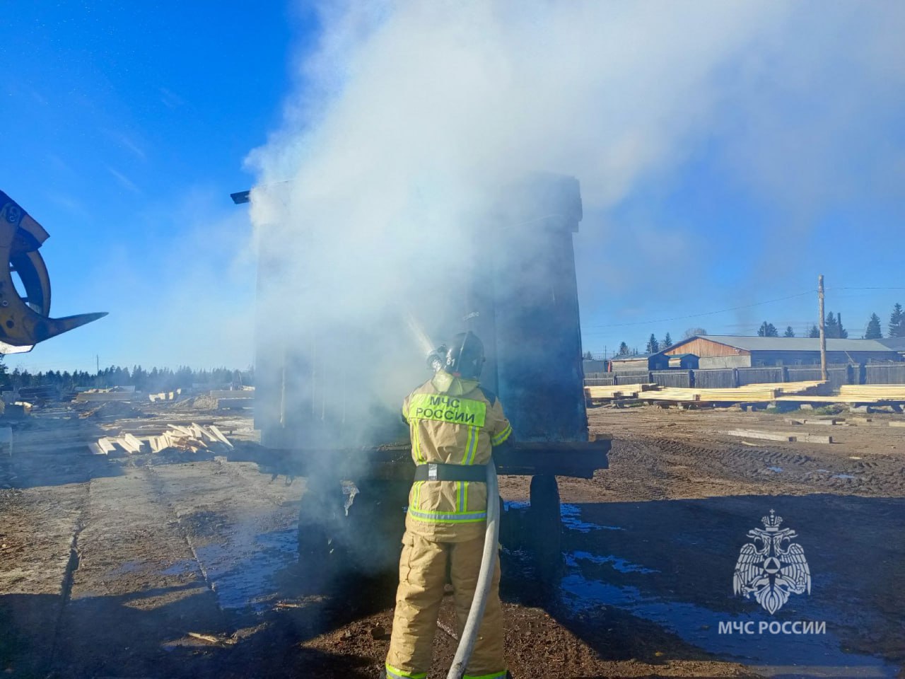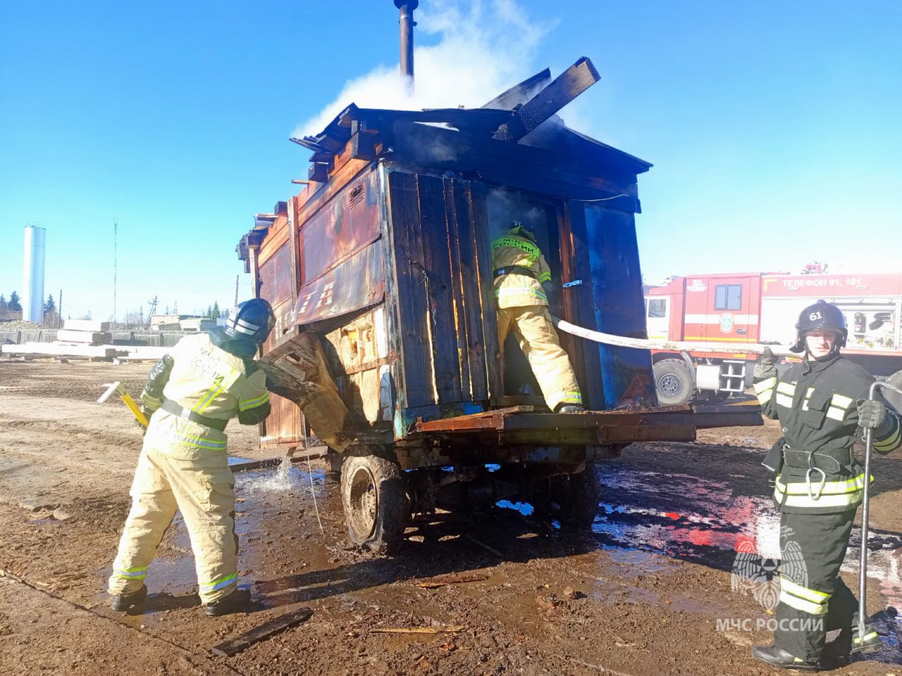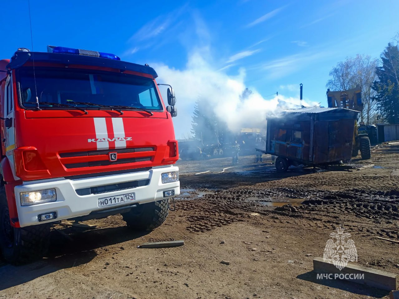 В селе Пировское днём из-за печи загорелся строительный вагончик (фото 1, 2, 3). Пожар был ликвидирован на площади 12 м.