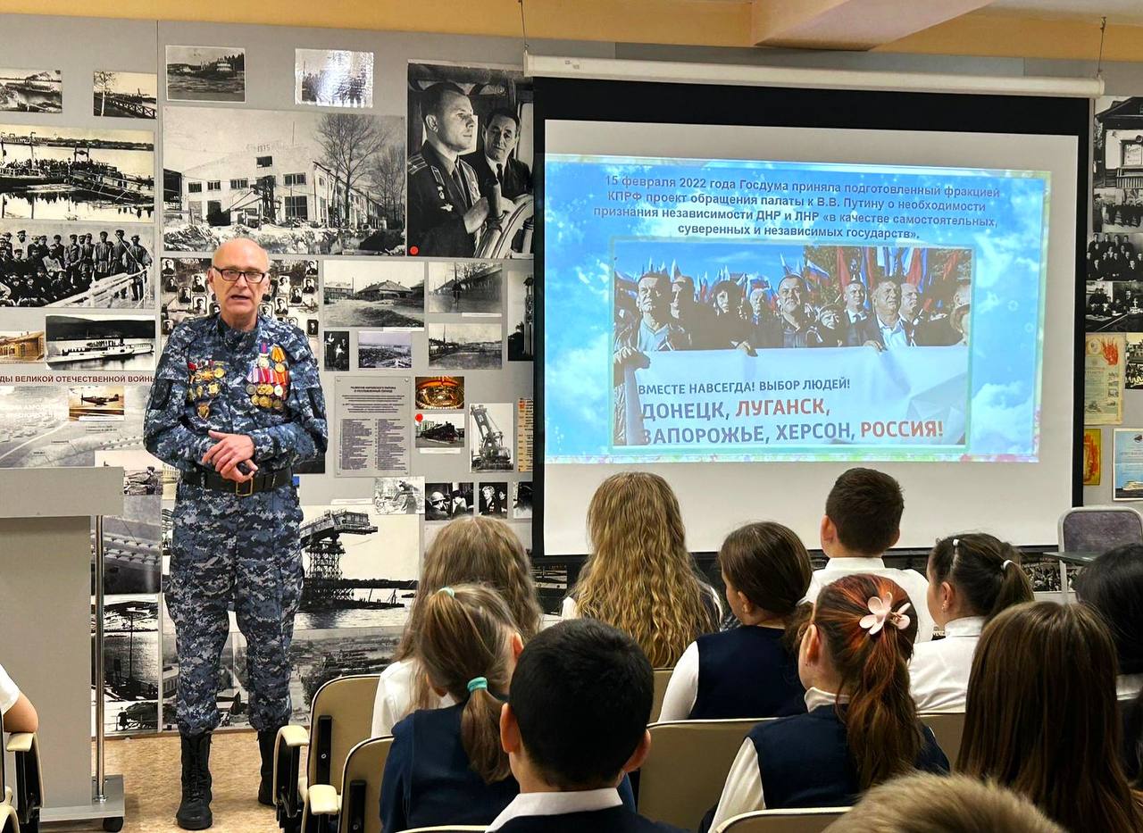 В честь воссоединения с Россией Донецкой и Луганской народных республик, Запорожской и Херсонской областей. В красноярских школах прошли «Уроки мужества». Их для учеников провел член Общественного совета при городской полиции, председатель Совета ветеранов полка ППСП МУ МВД России «Красноярское», ветеран боевых действий на Северном Кавказе Павел Янкун.