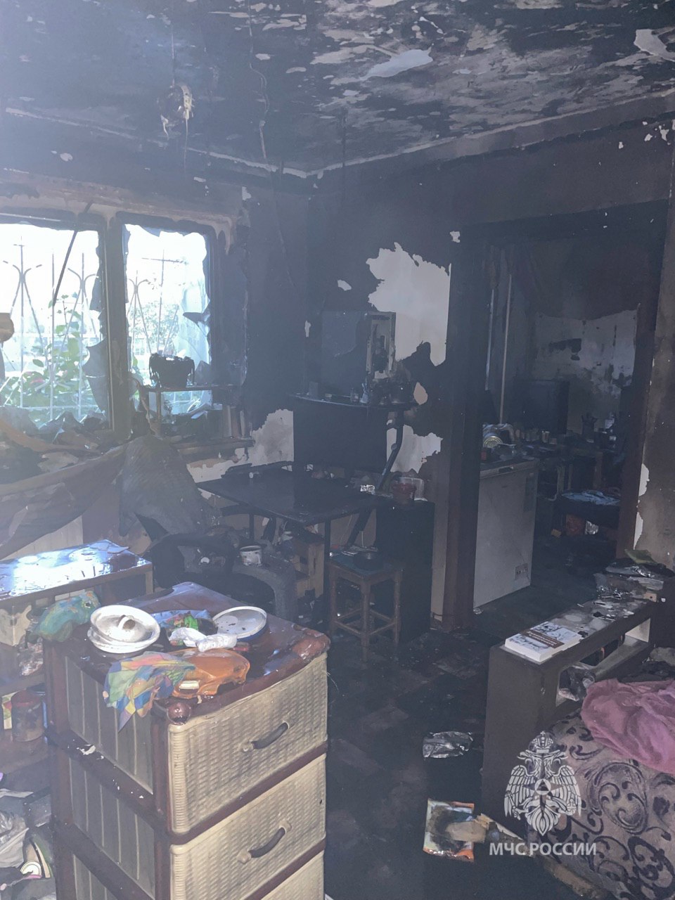Днём в Красноярске на улице Маяковского произошел пожар в квартире, расположенной на 1 этаже многоквартирного дома. Подразделения газодымозащитной службы эвакуировали по лестничным маршам 27 человек, среди которых оказались 8 детей. В результате возгорания выгорела квартира на площади 40 м, и от огня пострадал её владелец. На месте происшествия работали 9 единиц техники и 30 сотрудников. Предварительная причина - неосторожное обращение с огнём (фото 1).