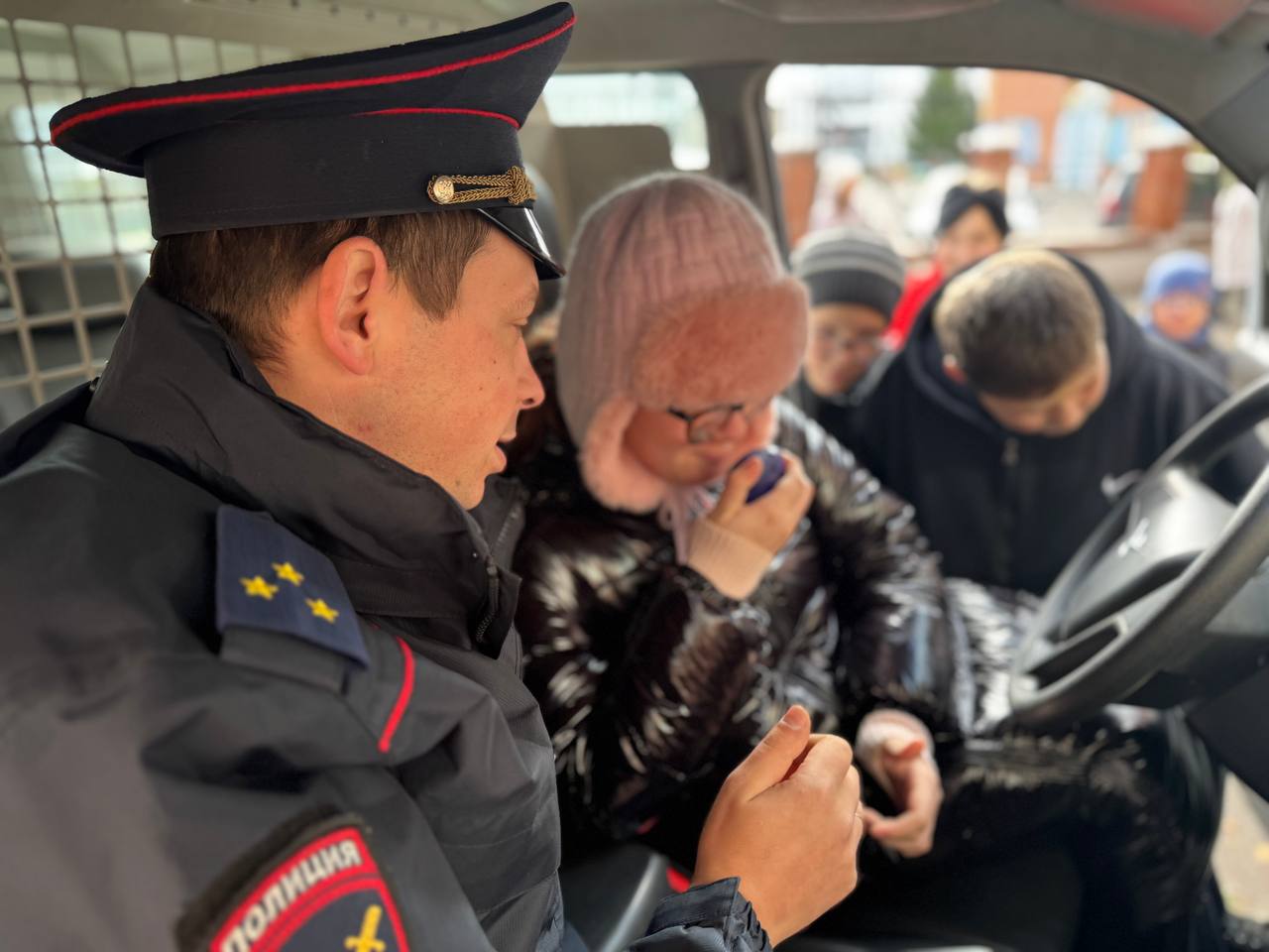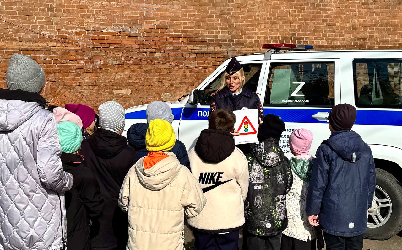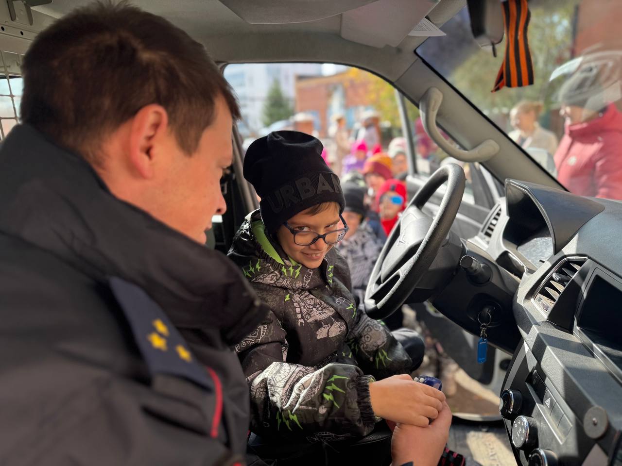В конце встречи школьники по очереди произнесли призывы к соблюдению правил на дороге в громкоговорящее устройство патрульного автомобиля.