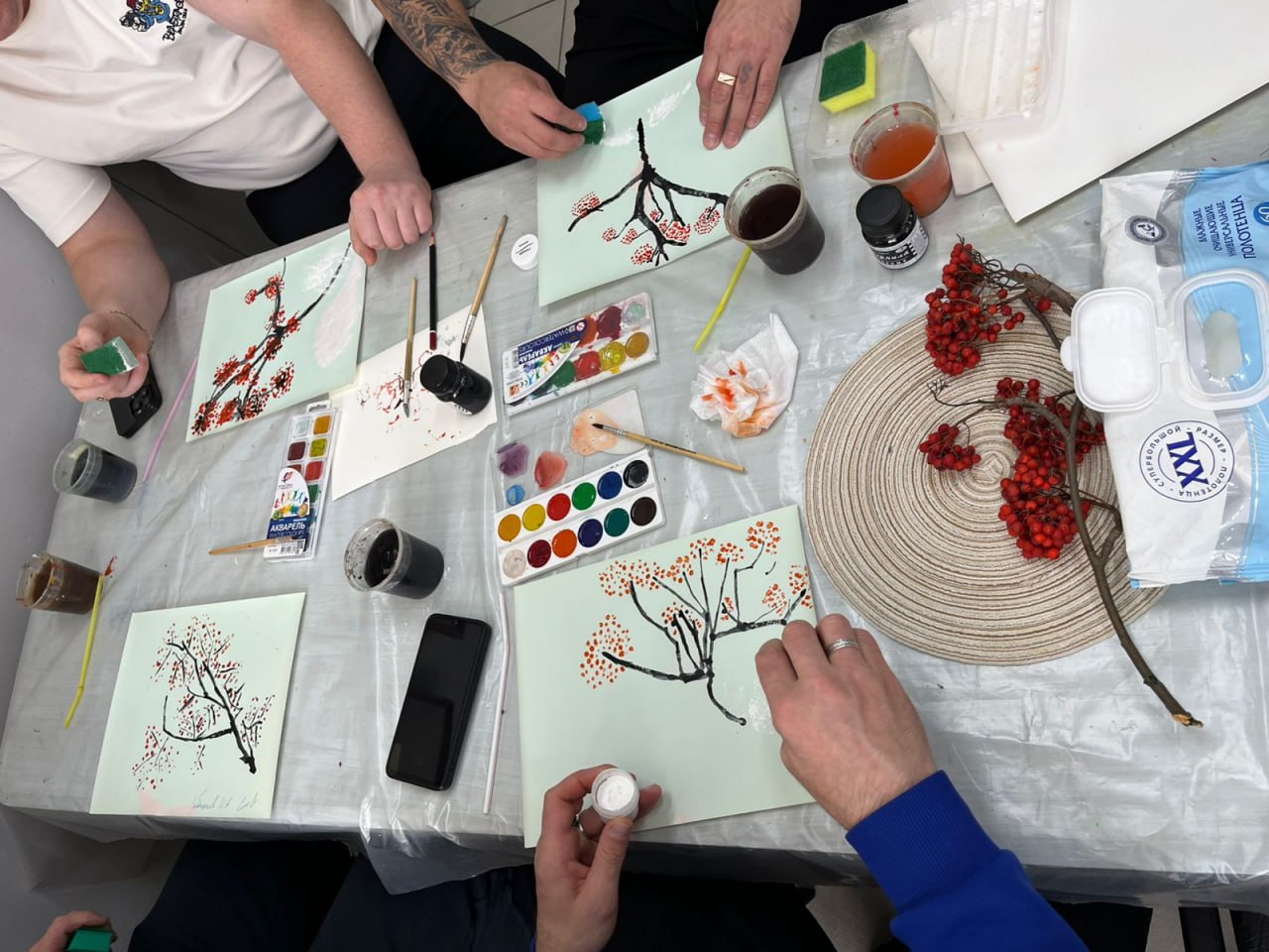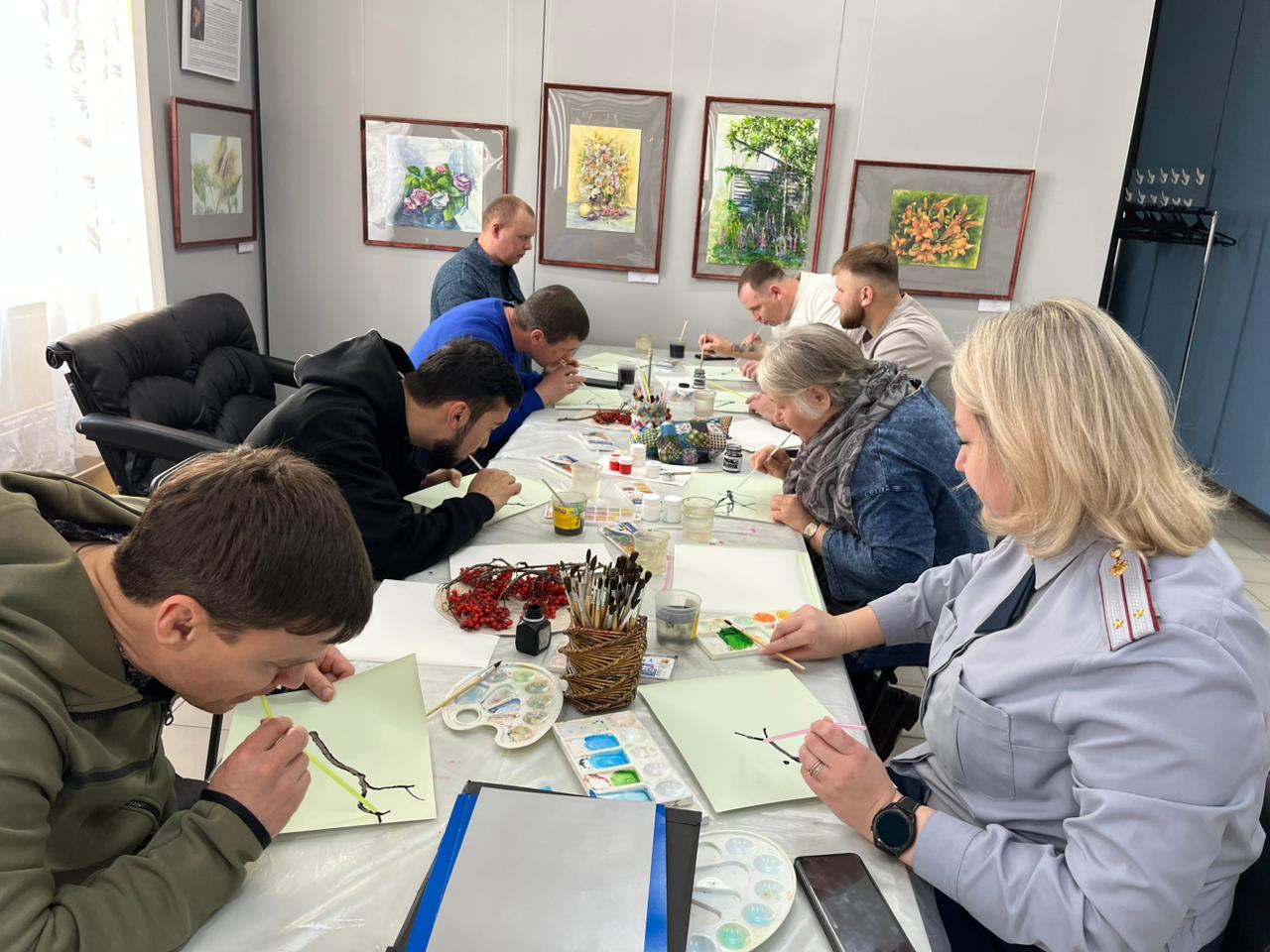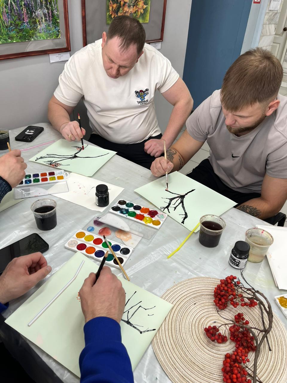 В городе Лесосибирске осужденные к принудительным работам ИУФИЦ Тюрьмы-2 посетили мастер-класс по живописи «Гроздья рябины в снегу».