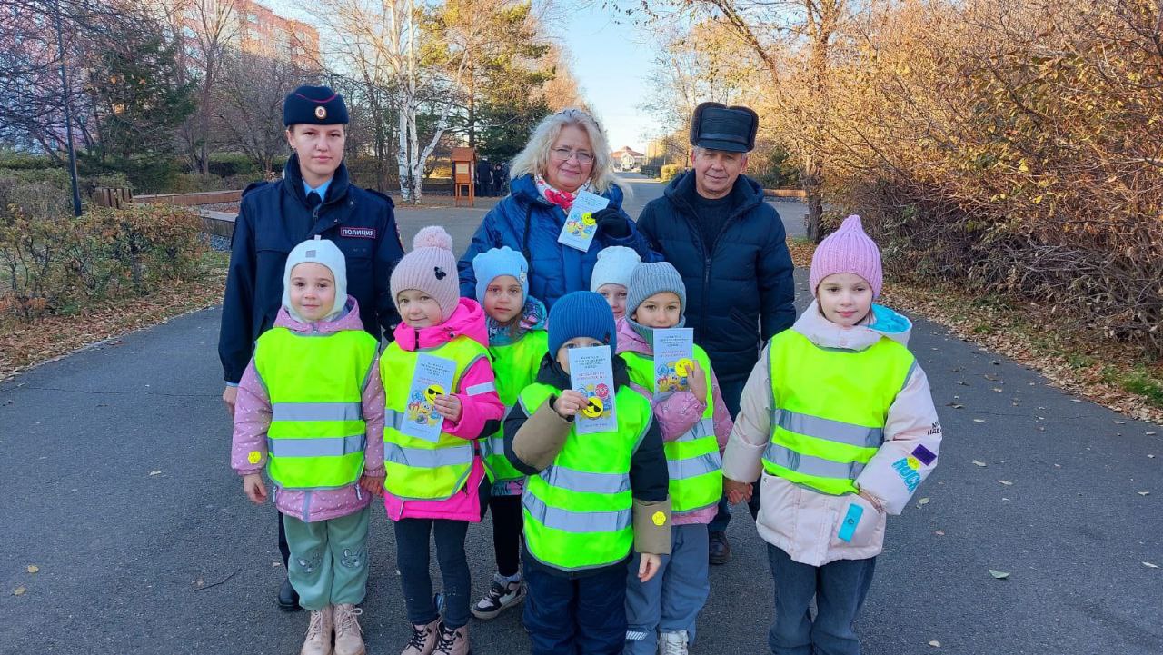 Воспитатели и воспитанники детского сада «Журавушка» совместно с инспектором Госавтоинспекции вышли на оживлённые улицы, чтобы напомнить пешеходам о важности использования светоотражающих элементов. Прохожие отвечали на вопросы и получали от участников акции световозвращающие аксессуары.