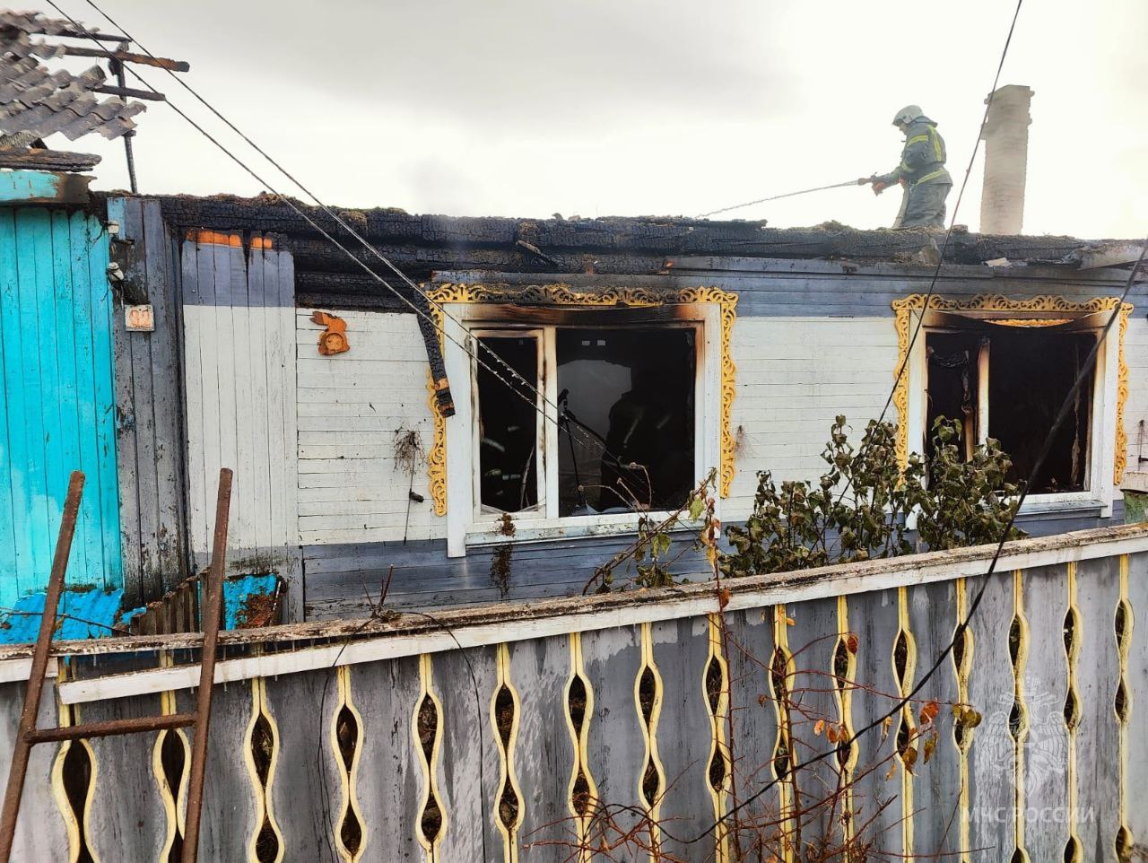 Произошло возгорание в одноэтажном доме в Богучанском районе. Огонь повредил кровлю, две квартиры, кровлю гаража на общей площади 120 м. Привлекались 3 единицы техники, 7 специалистов. Причина: короткое замыкание электропроводки (фото 2).