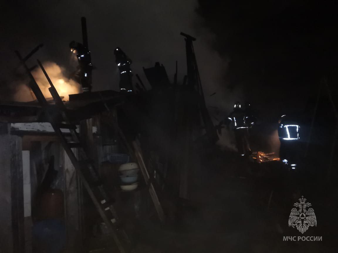 В Лесосибирске по улице Лесной загорелась баня на площади 60 м. Существовала угроза распространения огня на жилой дом и соседние строения. Возгорание ликвидировали 5 единиц техники, 16 человек. Причина - короткое замыкание электропроводки (фото 1).