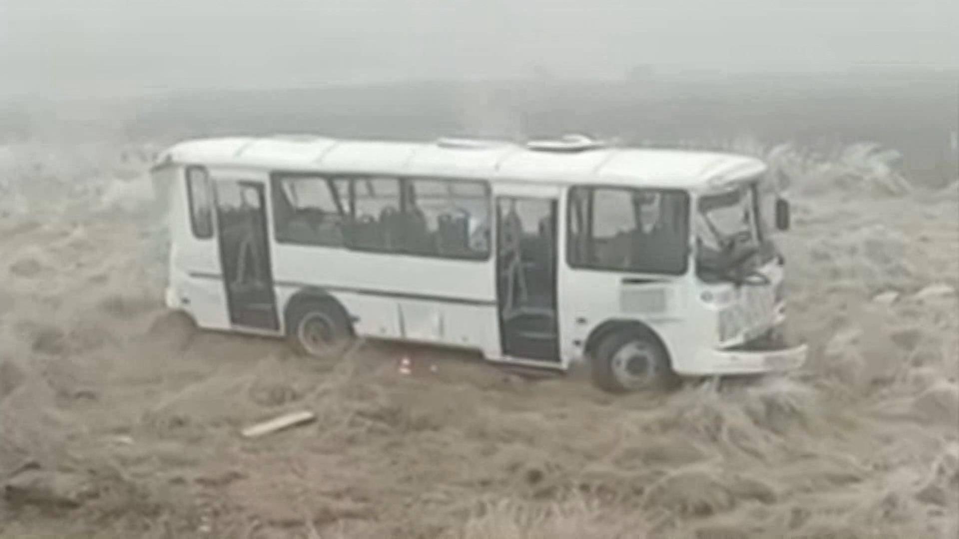 В ДТП в Красноярском крае пострадали 7 пассажиров, в том числе двое детей. Судя по кадрам с видеорегистратора, водитель автобуса пошел на обгон попутного автомобиля и не справился с управлением на узкой дороге с плохой видимостью. Габаритную машину занесло на наледи, она вылетела в кювет и опрокинулась. От сильного удара у автобуса разбилось лобовое стекло, кроме того, повреждена крыша.
