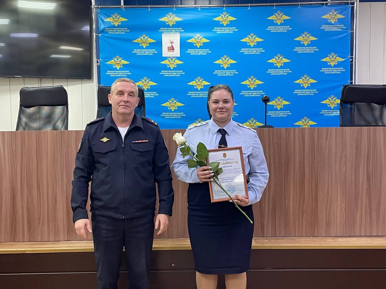 Врио начальника МУ МВД России «Красноярское» Сергей Тетюхин поздравил сотрудников полиции и вручил благодарственные письма за добросовестное выполнение служебных обязанностей.