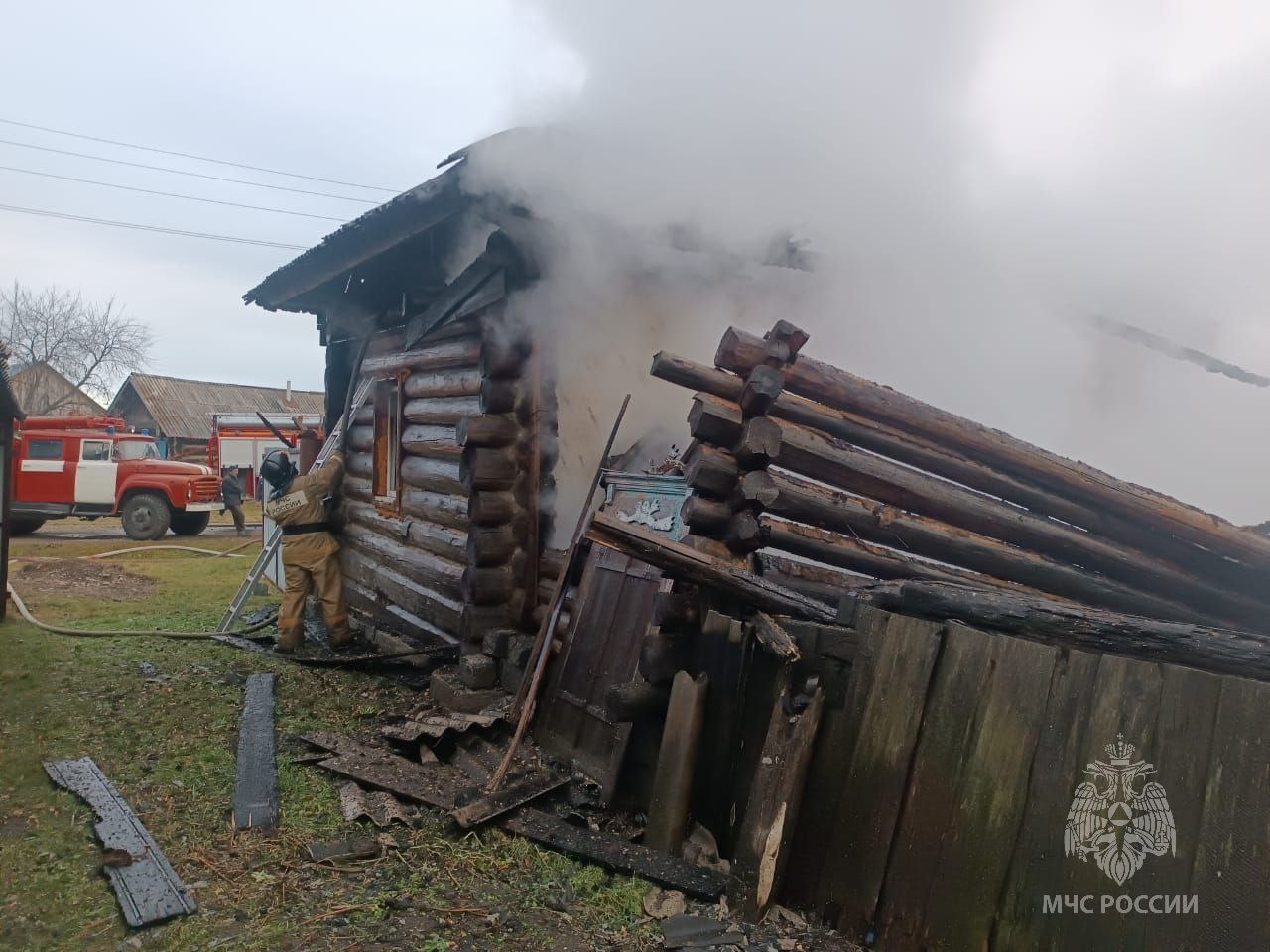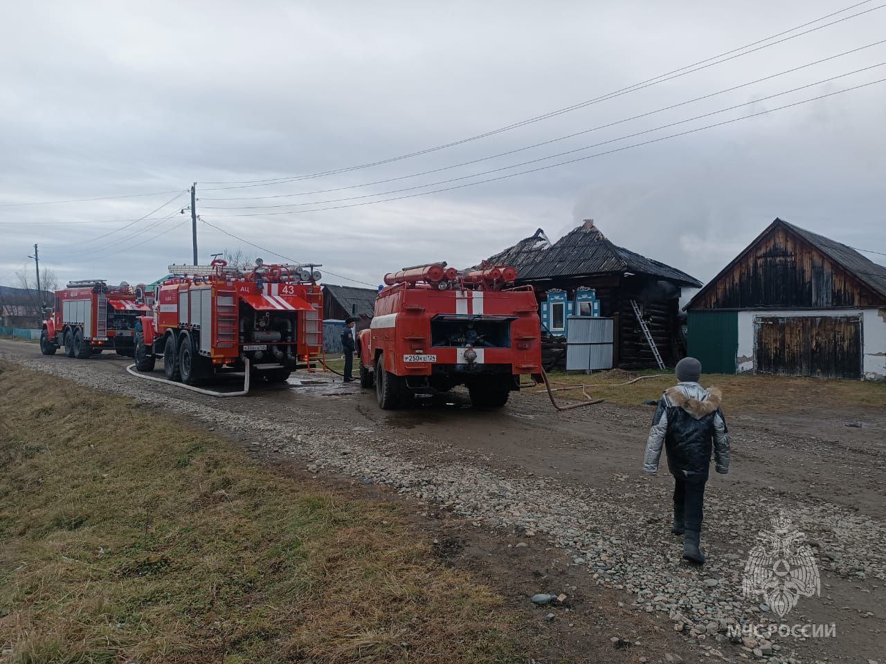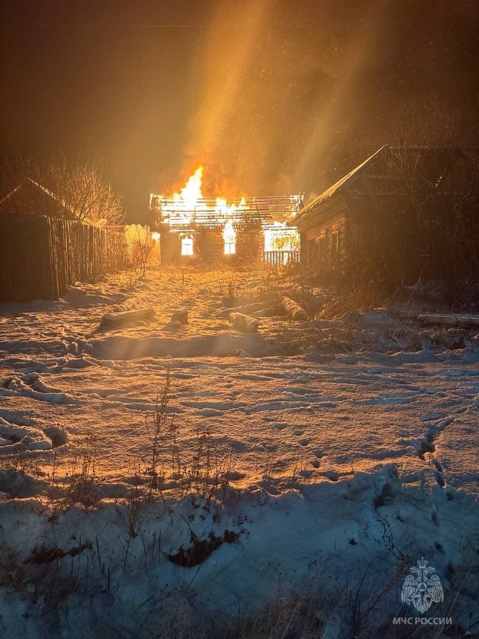 В селе Григорьевка Ермаковского муниципального округа загорелся одноэтажный жилой дом. Самостоятельно до прибытия пожарно-спасательных подразделений эвакуировались 3 человека, в том числе 2 ребенка. Огонь повредил кровлю и стены на общей площади 64 м. Возгорание вместе с добровольцами ликвидировали 3 единицы техники, 11 человек. Причина: короткое замыкание электропроводки (фото 1,2).