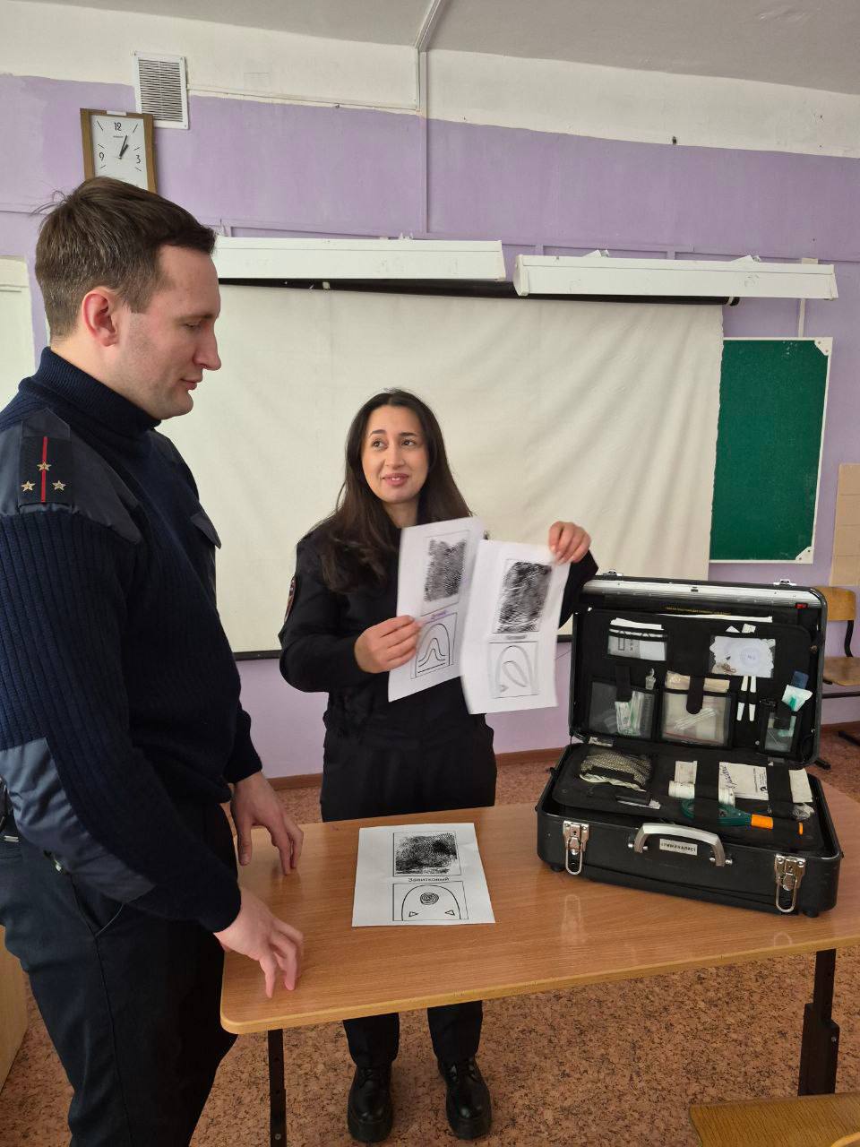 Участковый уполномоченный полиции ОП №9 МУ МВД России «Красноярское» Максим Быстров рассказал об истории службы и секретах профилактической работы с гражданами.Эксперт ЭКО МУ МВД России «Красноярское» Асель Мустафаева познакомила школьников с видами судебных экспертиз и показала содержимое своего «волшебного чемоданчика».
