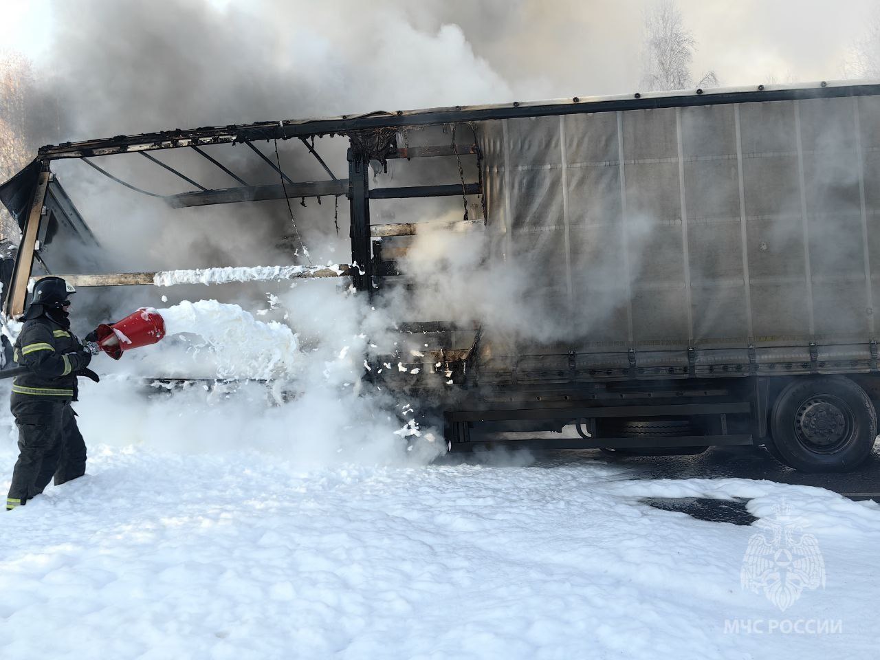 На 895 километре автодороги Р-255 «Сибирь» произошло возгорание грузового автомобиля на площади 18 м. Привлекались 2 единицы техники, 8 человек. Предварительная причина: неисправность систем, механизмов и узлов транспортного средства (фото 4, видео).