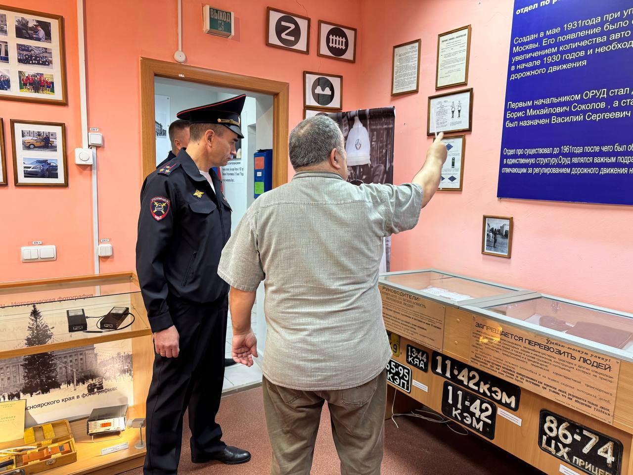Сергей Молявко отметил: «Важно помнить истоки нашей службы! Музей — это не просто экспозиция, а живая связь поколений сотрудников, которые на протяжении десятилетий обеспечивают безопасность на дорогах края».