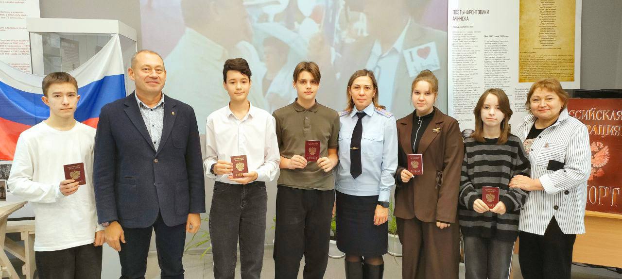 В рамках празднования Всемирного дня ребенка пять ачинских школьников получили свой главный документ — паспорт гражданина РФ. Церемонии предшествовала познавательная экскурсия в музее, а почетными гостями были врио начальника отдела по вопросам миграции МО МВД России «Ачинский» подполковник полиции Ольга Нестерова и депутат Ачинского окружного Совета депутатов Владлен Власенко,они пожелали стать достойными людьми, патриотами своей страны,добиваться поставленных целей и бережно относиться к паспорту гражданина РФ.