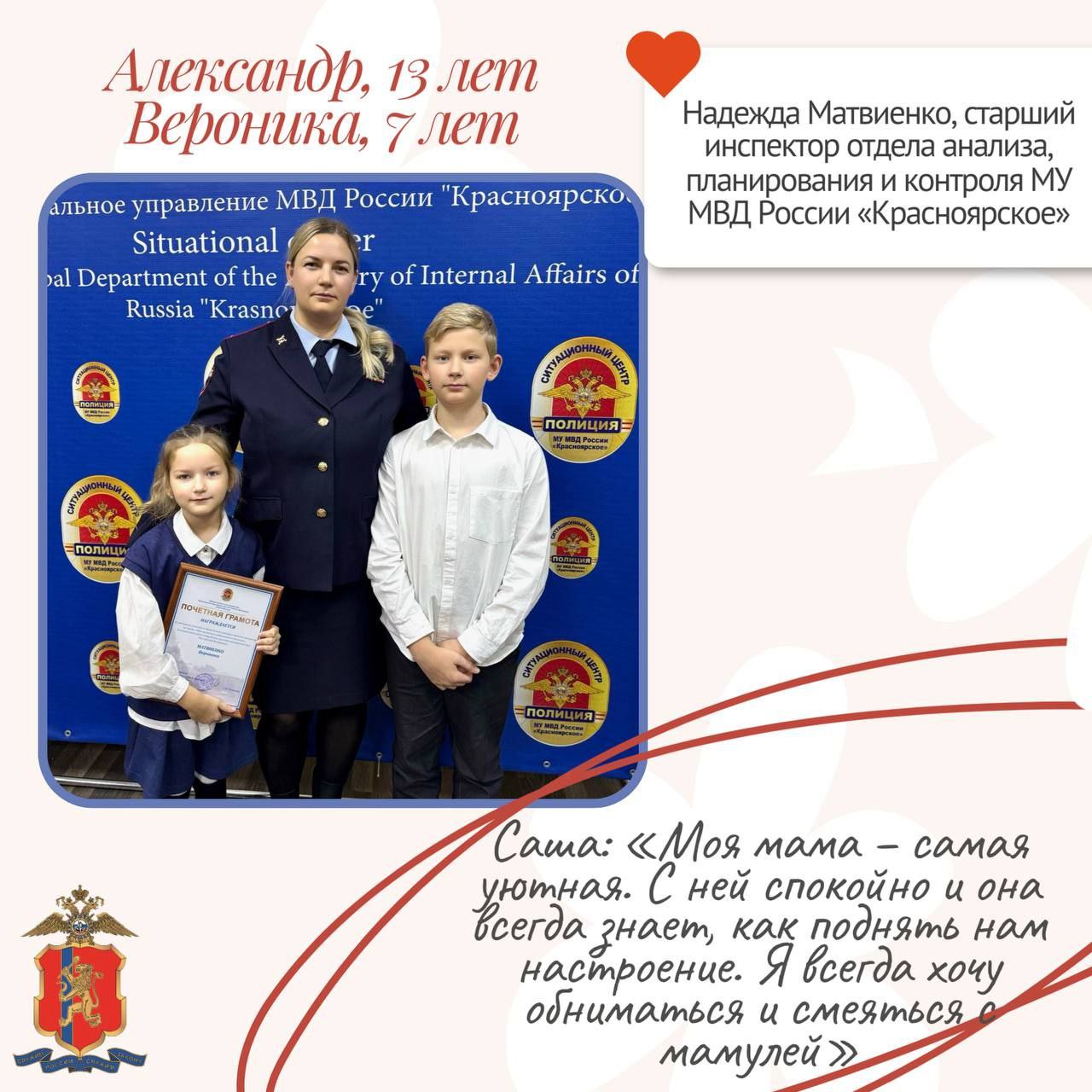 В День матери мы решили спросить у детей наших сотрудников, за что они любят своих мам и как относятся к службе в органах внутренних дел. В карточках они трогательно рассказали о самых дорогих женщинах в своей жизни.