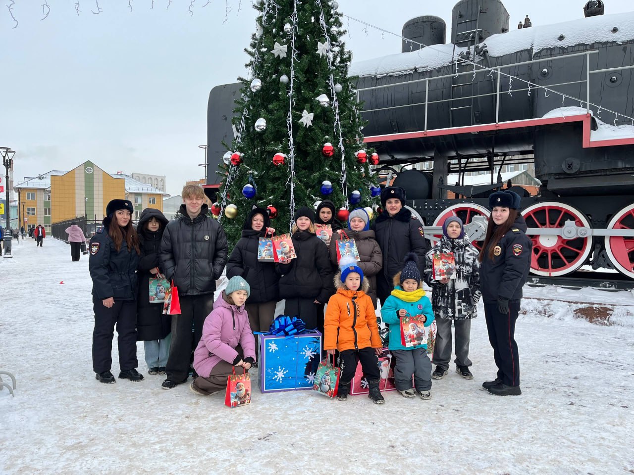 При содействии транспортных полицейских зрителями и участниками насыщенной праздничной программы стали более двухсот ребят из семей, находящихся в трудной жизненной ситуации, состоящих на учетах в органах внутренних дел, а также дети участников специальной военной операции. Для них организовали экскурсию по железнодорожному вокзалу, Сибирскому ЛУ МВД России и вручили сладкие подарки.