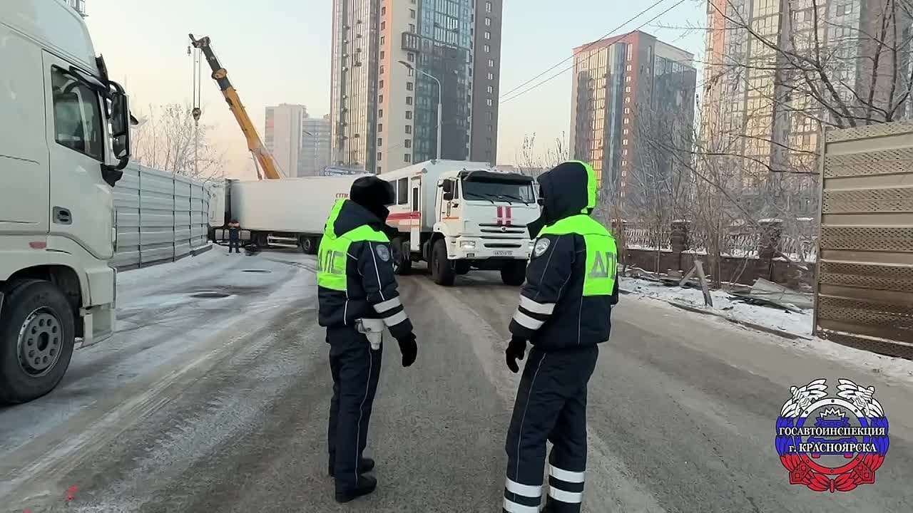 Сотрудники красноярской Госавтоинспекции обеспечили безопасность на месте ДТП с участием большегрузного автомобиля на ул. Авиаторов