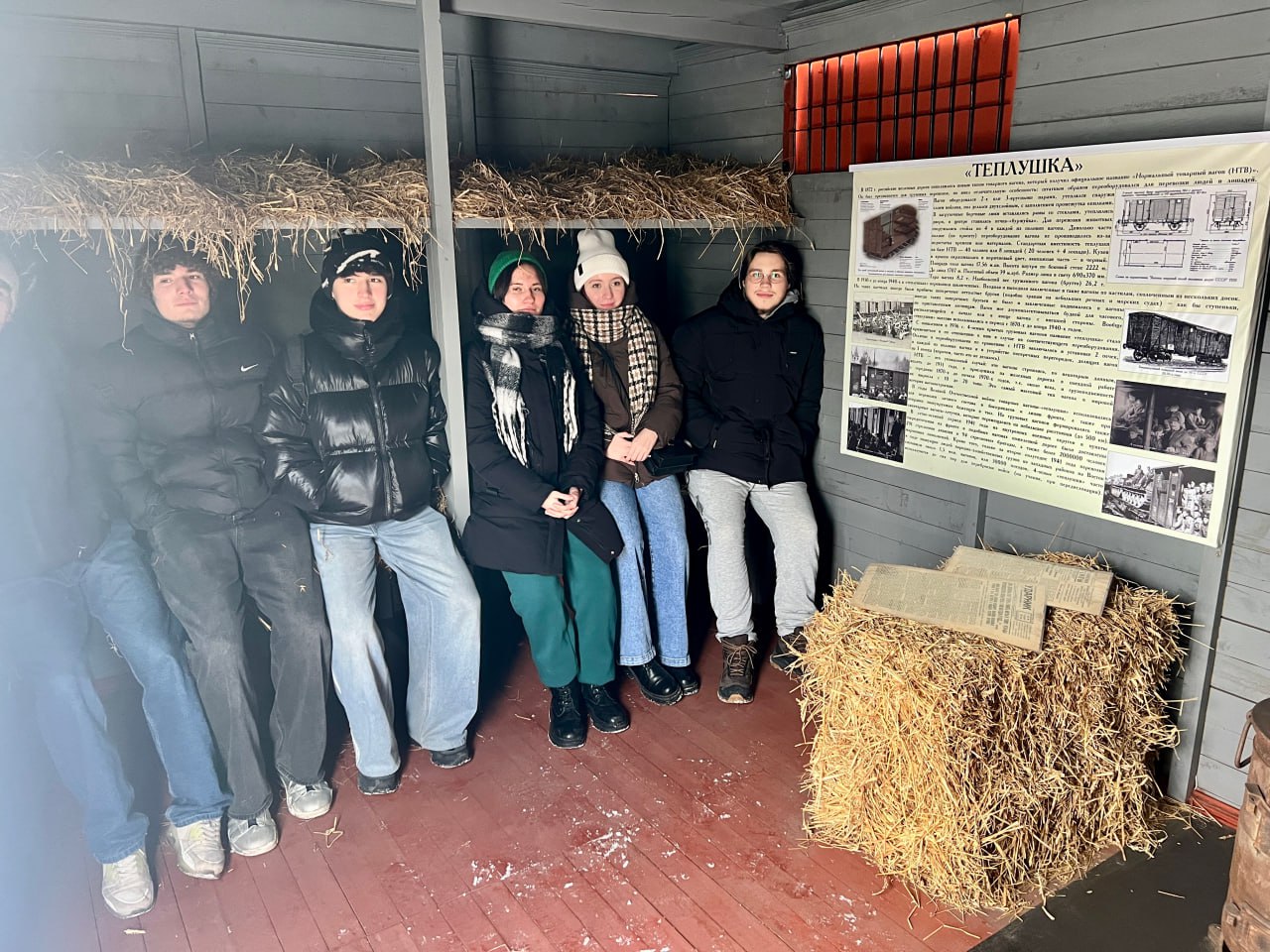 Также экскурсанты зашли в железнодорожный вагон-«теплушку». Во время Великой Отечественной войны он предназначался для людских перевозок. Внутри вагона размещены деревянные нары, чугунная печь, фонари освещения, на полу – солома, на стенах – старые газеты и арестантская посуда.