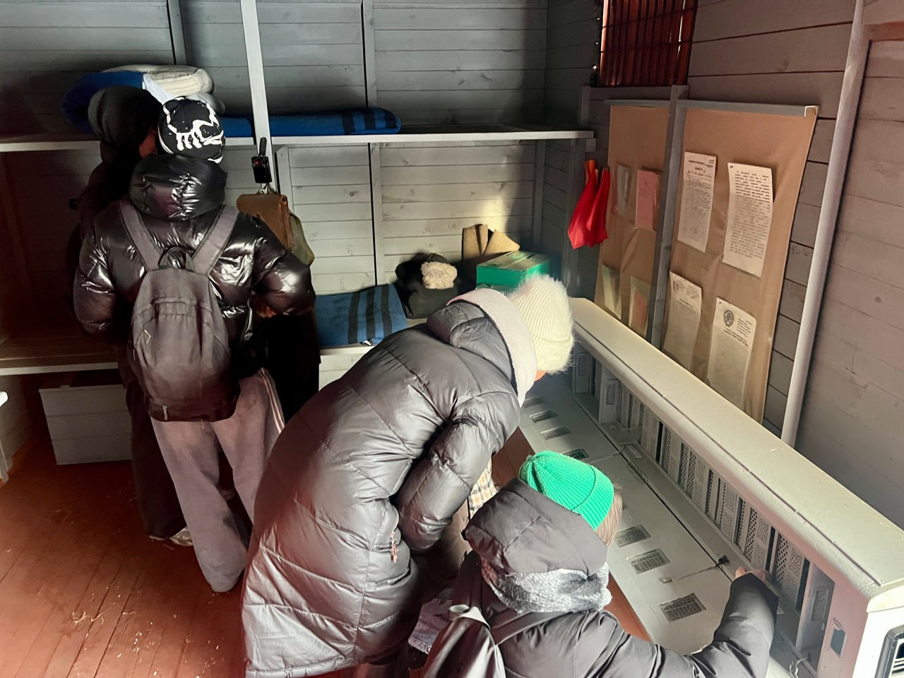 Подростки и молодые люди осмотрели камеры для перевозки конвоируемых, купе начальника и состава караула, помещение для приема пищи, манекены конвоиров и конвоируемых лиц в полный рост в одежде разных эпох.