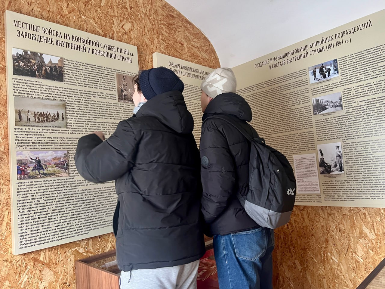 В Красноярске состоялось познавательное мероприятие для учеников профильных классов ГУФСИН средней школы №72 и молодых сотрудников КТБ 1 — они побывали на экскурсии в музее Управления по конвоированию