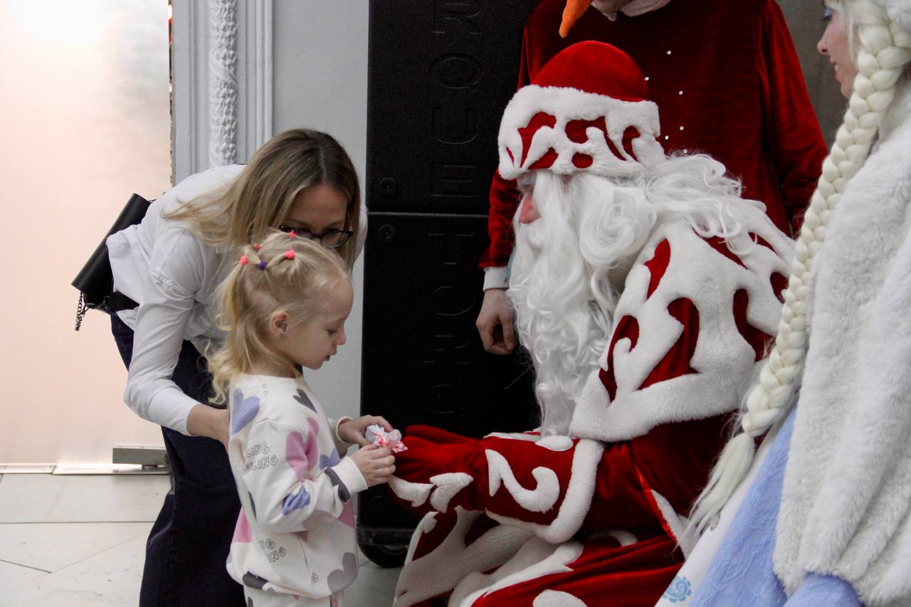 В завершение праздника ни один ребёнок не остался без внимания — Дед Мороз и Снегурочка вручили всем подарки и тёплые пожелания здоровья, счастья и успехов в новом году.
