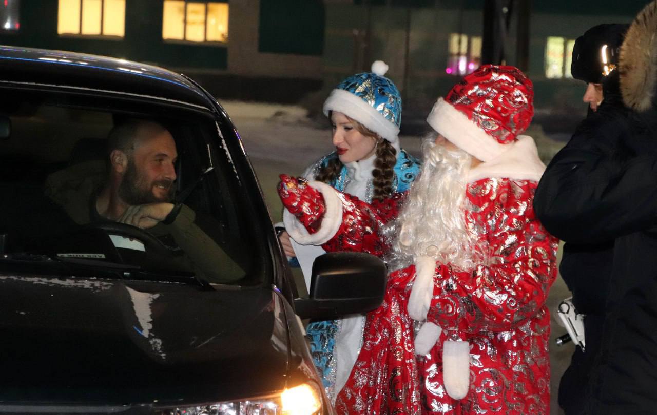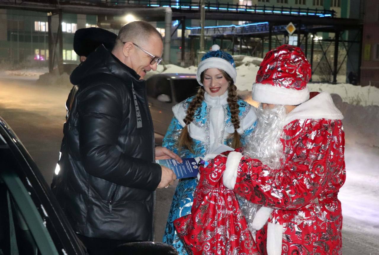 В преддверии долгожданных праздников в Дудинке прошла яркая профилактическая акция «Я соблюдаю ПДД! А ты?». Вместе с инспекторами ДПС на службу вышли необычные помощники — полицейские Дед Мороз и Снегурочка, чтобы в праздничной атмосфере напомнить о важности соблюдения правил дорожного движения.