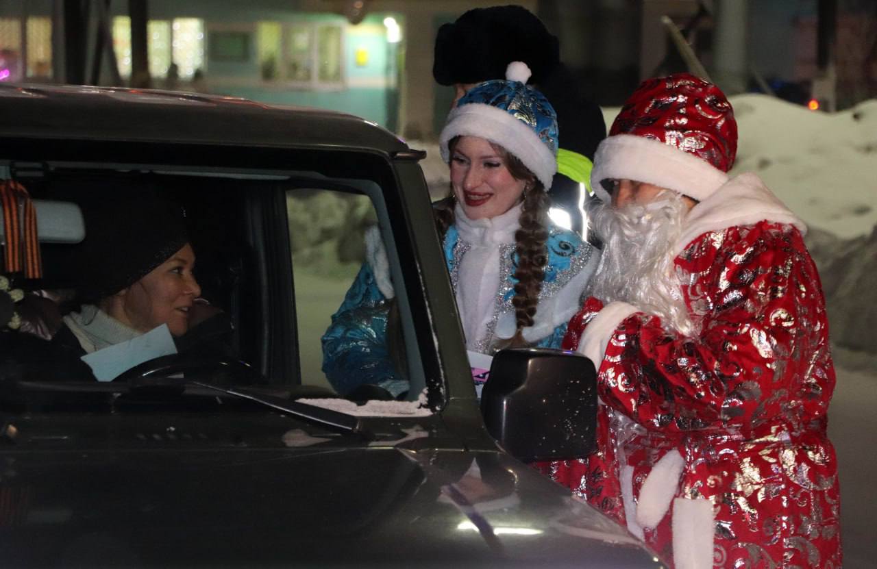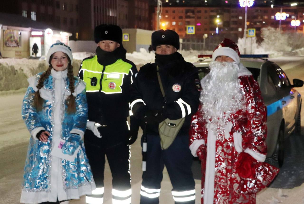 Полицейские Дед Мороз и Снегурочка подарили жителям Таймыра новогоднее настроение и напомнили о безопасности на дорогах!