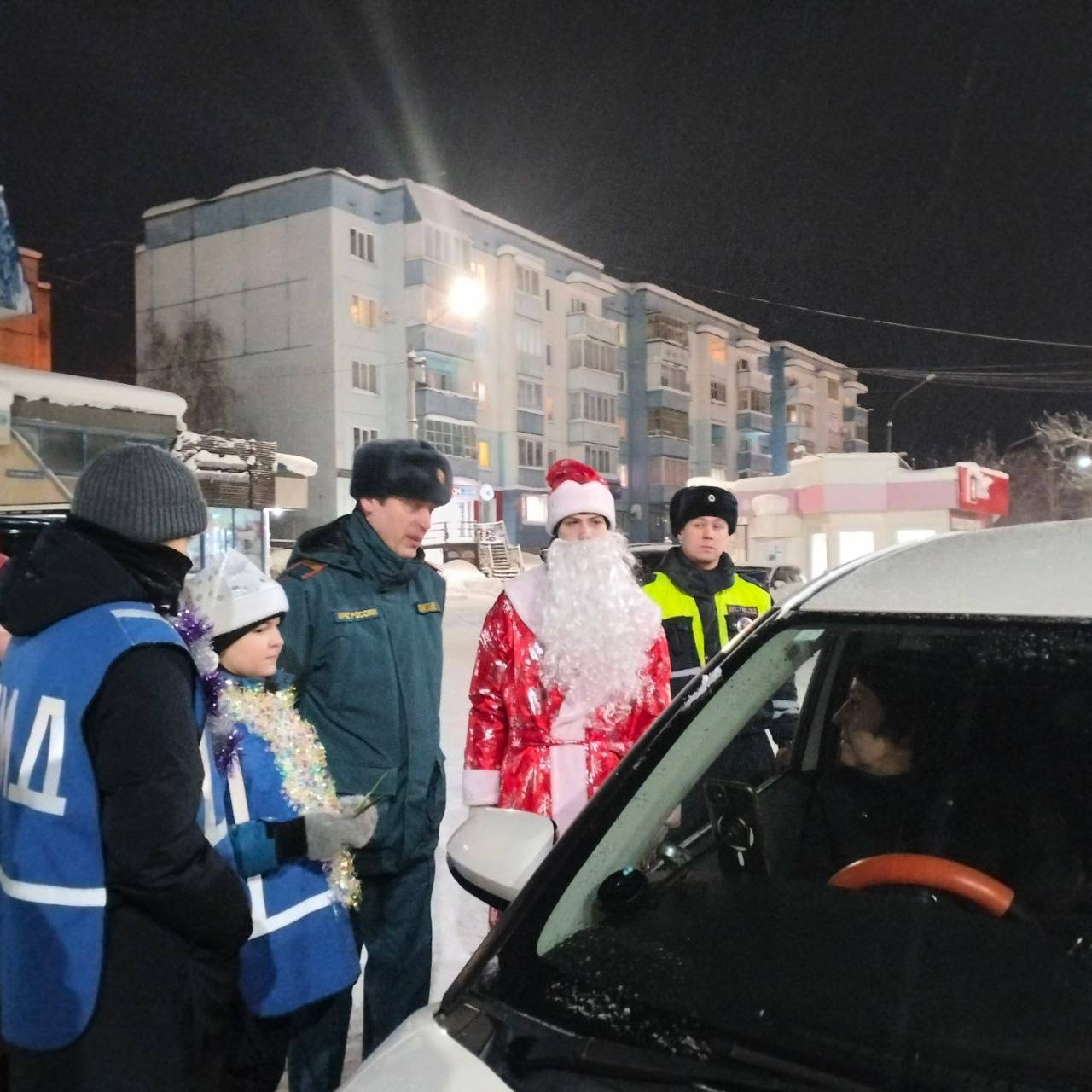 В канун Нового года в Кежемском округе прошла совместная акция Госавтоинспекции, МЧС и юных инспекторов Центра детского творчества.