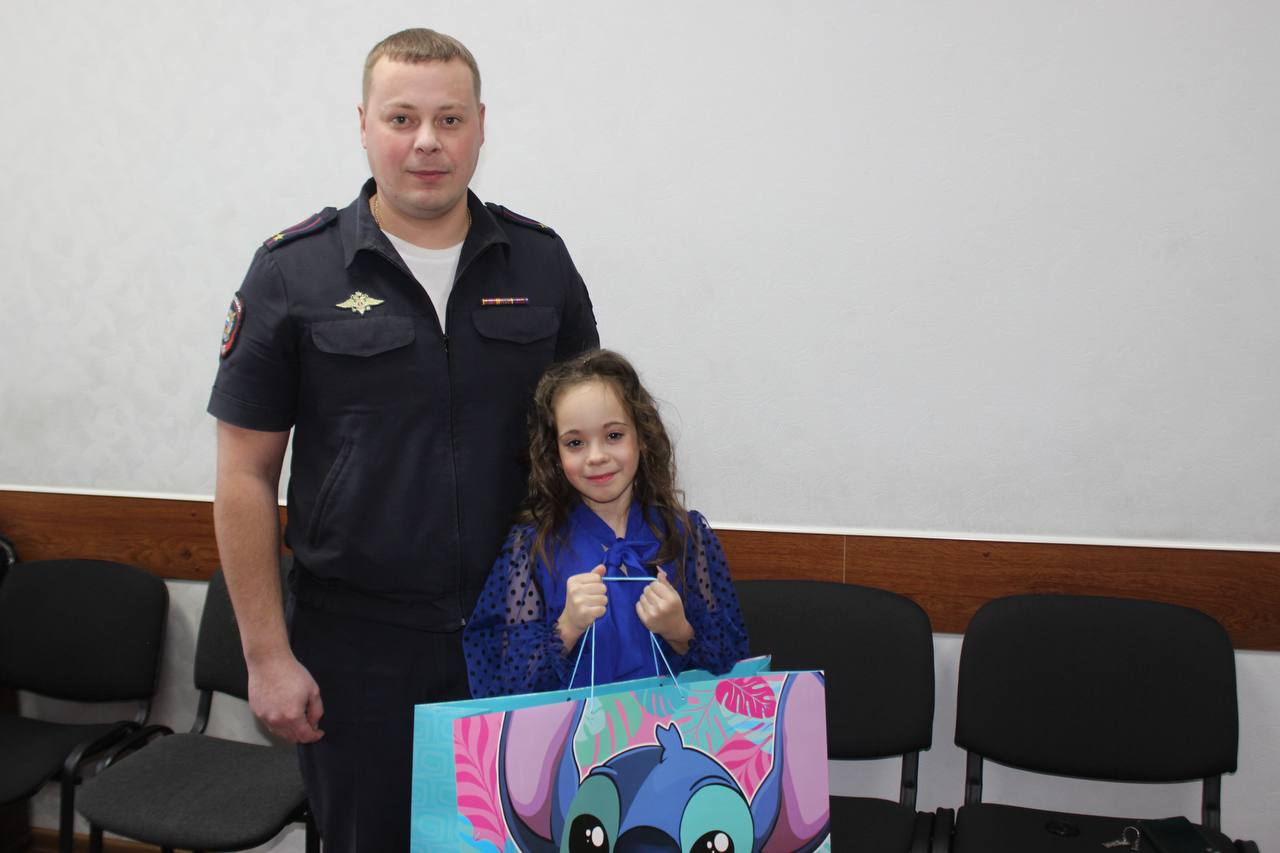 Здесь полицейский Дед Мороз исполнил мечту юной жительницы Владлены. Врио начальника МО МВД России «Бородинский» подполковник полиции Вячеслав Панченко лично вручил ей огромный набор для творчества — мозаику и пазлы. Девочка была в восторге! А ещё она по-секрету заметила маме: «Правда, Дед Мороз зачем-то сбрил бороду»