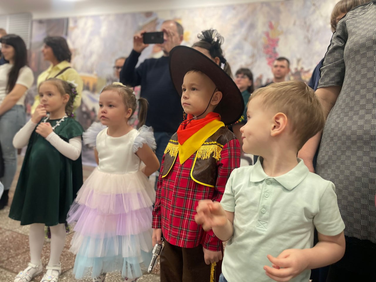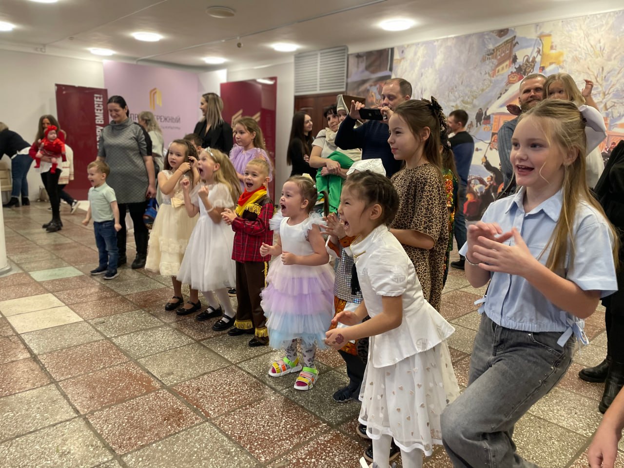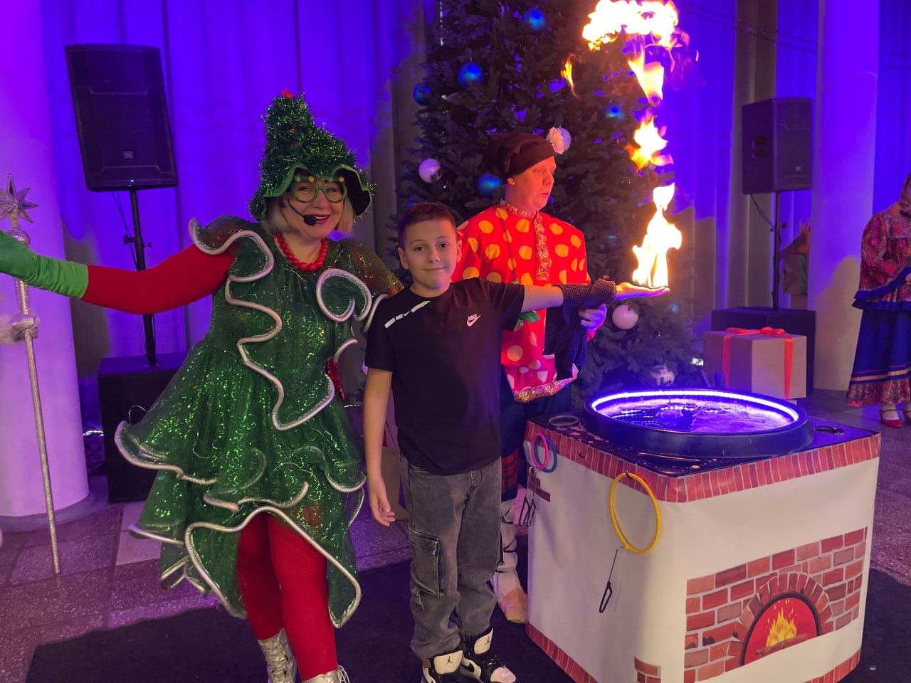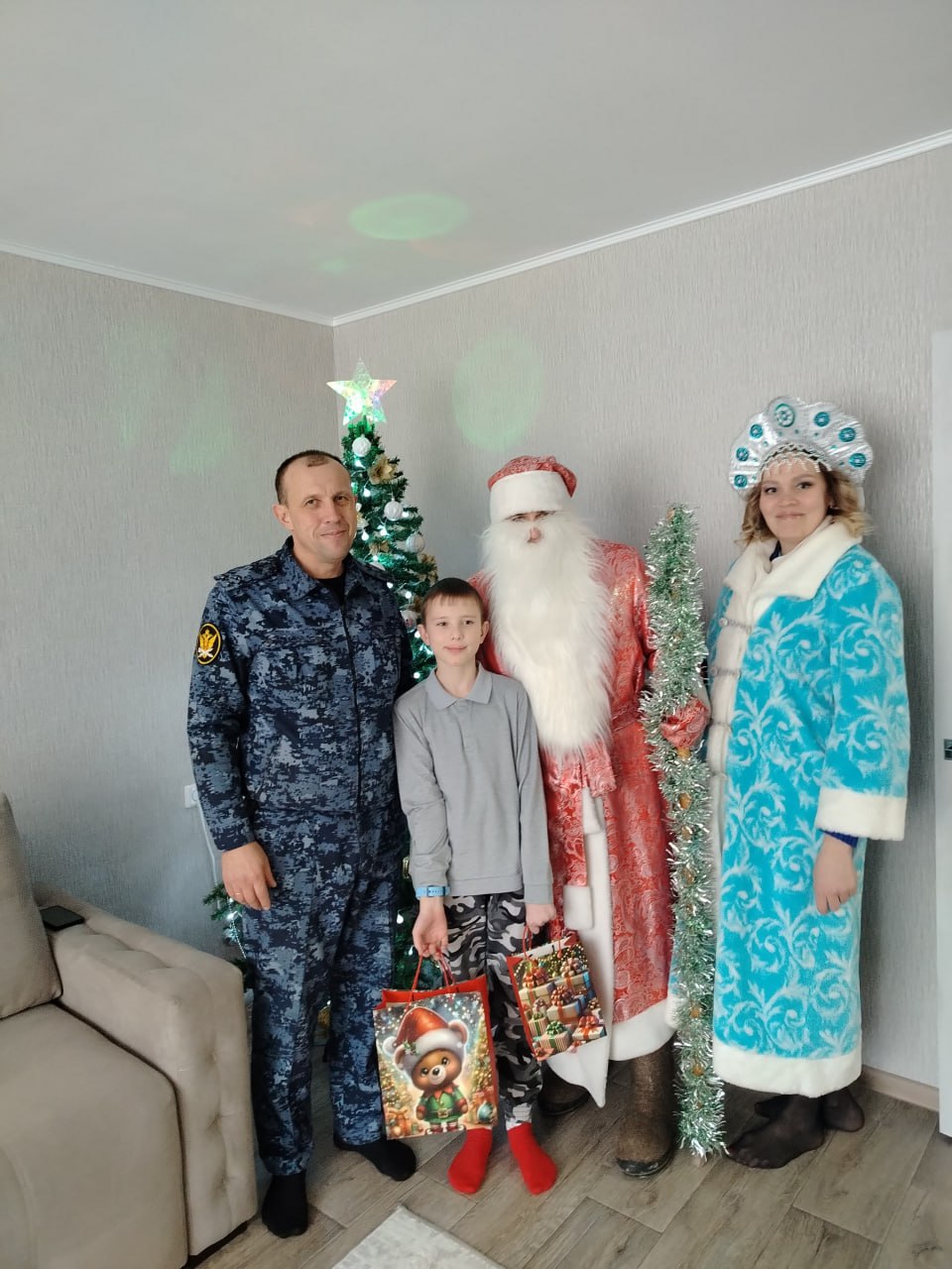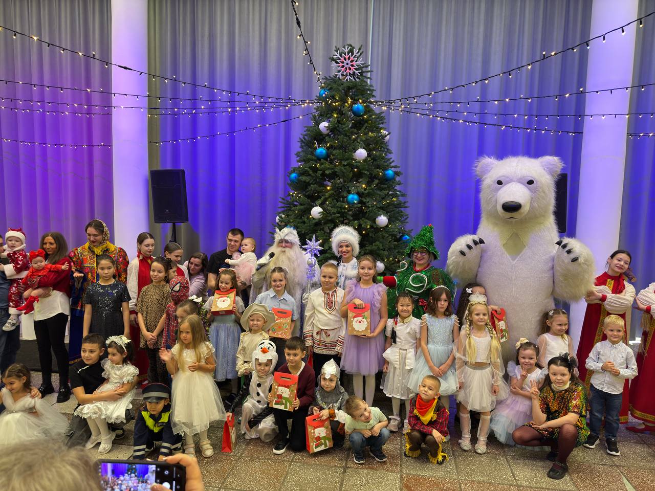 Для детей сотрудников были организованы утренники на различных площадках. А к тем, кто не смог прийти на утренник или просто очень хотел показать свою елку, Дед Мороз и Снегурочка сами приехали в гости.