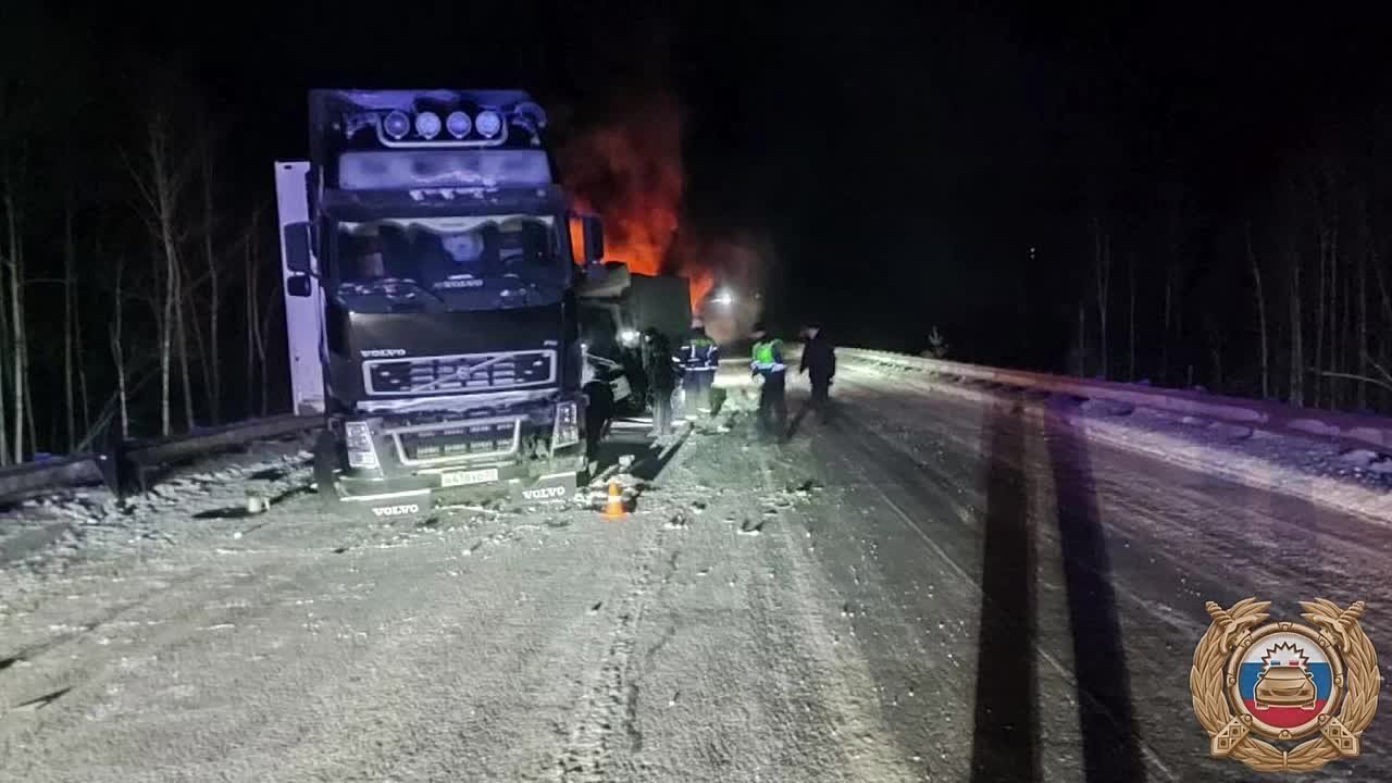 Предварительно установлено, 48-летний водитель грузового автомобиля «HINO» двигаясь со стороны города Иркутска в сторону Красноярска, допустил столкновение со стоящим на обочине большегрузом марки «VOLVO», 49-летний водитель которого остановился по причине замерзания дизельного топливо.