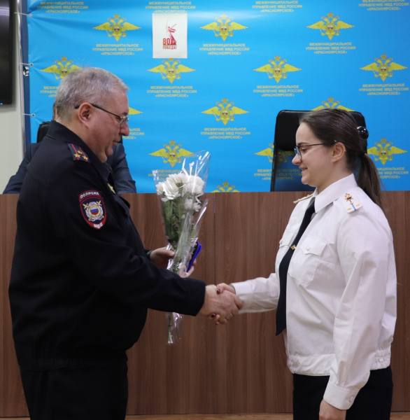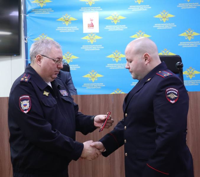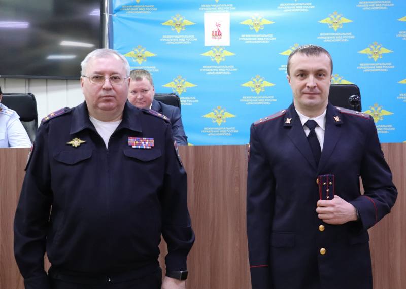 В торжественной обстановке начальник МУ МВД России «Красноярское» Геннадий Березин вручил сотрудникам полиции погоны с очередными офицерскими званиями.