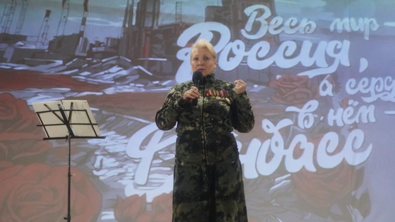 Елена Дергачева прочитала стихи, посвященные Родине, мужеству и человеческой стойкости, а также рассказала о деятельности фонда «Скала», направленной на поддержку участников специальной военной операции и членов их семей.