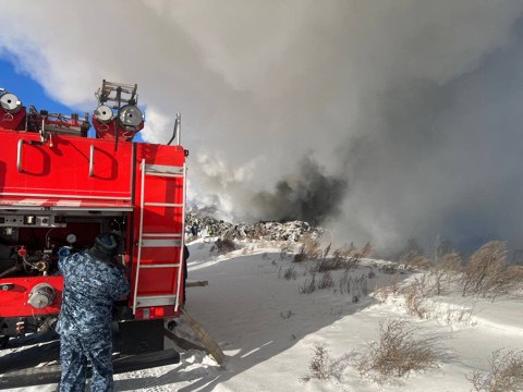 Крупный пожар случился на мусорном полигоне в поселке Индустриальный, недалеко от исправительных учреждений ГУФСИН.