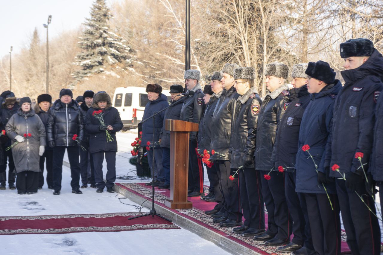 Полицейские почтили память ветерана и возложили цветы к мемориалу.