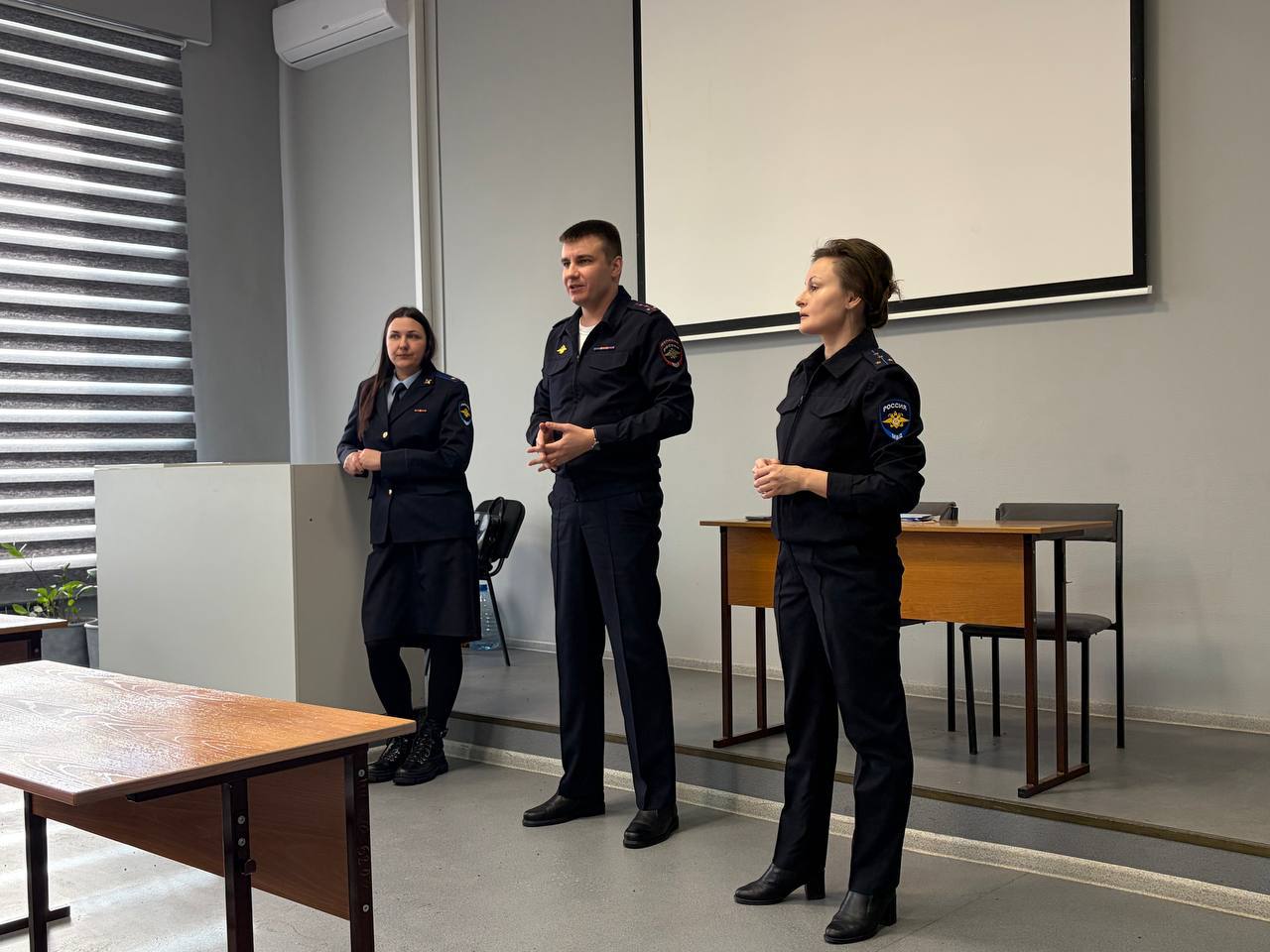 В Аграрном университете заместитель начальника МО МВД Уярский капитан полиции Антон Солодушко вместе с коллегами из следственного управления рассказал студентам-юристам о службе в следственных подразделениях и пригласил их на практику в органы внутренних дел.