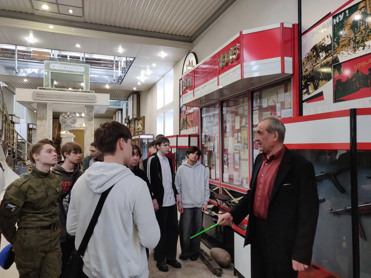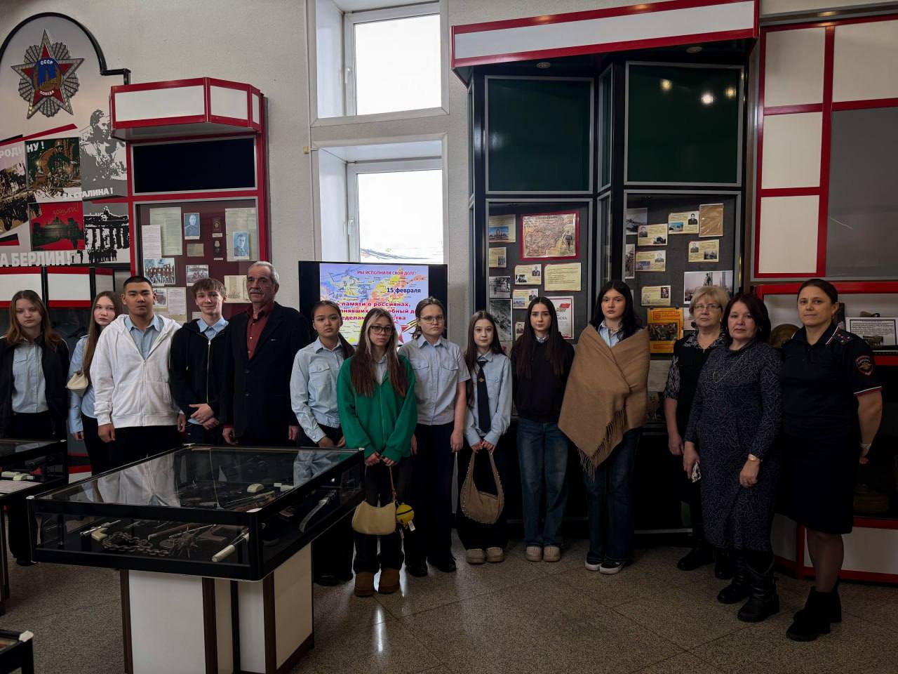 Школьники с большим интересом изучали экспонаты и смотрели видеоролик о мужестве, верности присяге и фронтовом братстве.