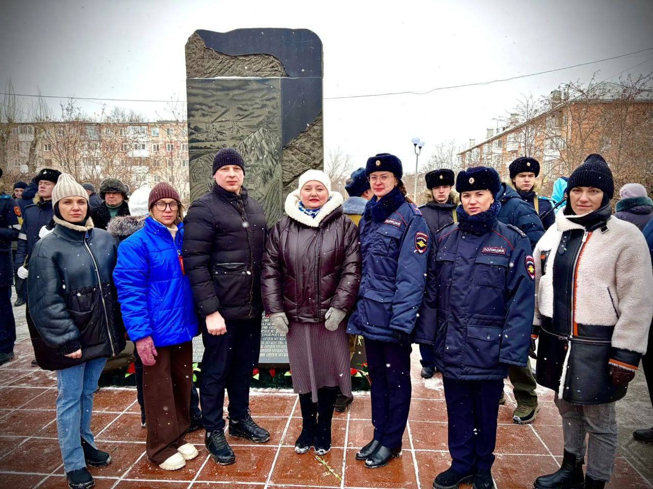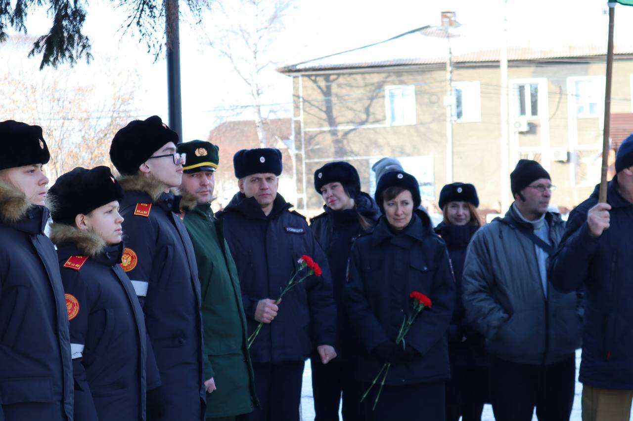 Ветераны боевых действий, сотрудники полиции и юные жители собрались на площади памяти.Выступающие — Максим Шмик, Евгений Вихров и Александр Горбачёв — выразили благодарность всем, кто защищал интересы страны за ее пределами.