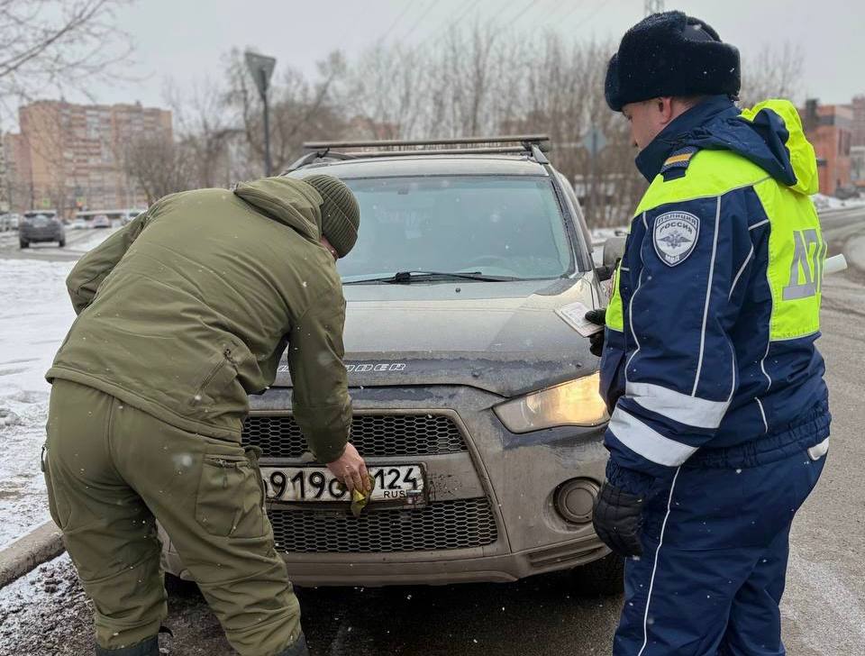 В Красноярске инспекторы полка ДПС провели акцию «Чистый номер»