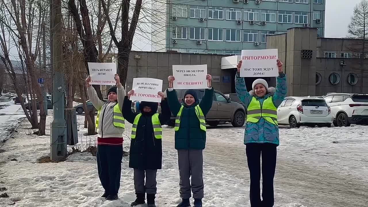 Сотрудники Госавтоинспекции Красноярска вместе с отрядом ЮИД школы №6 приняли участие в акции «Сбавь скорость»