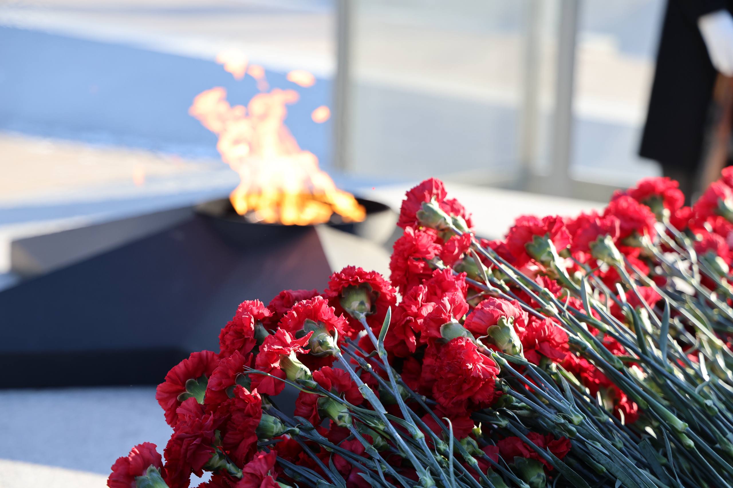 На Мемориале Победы прошла церемония возложения цветов и венков к Вечному огню.