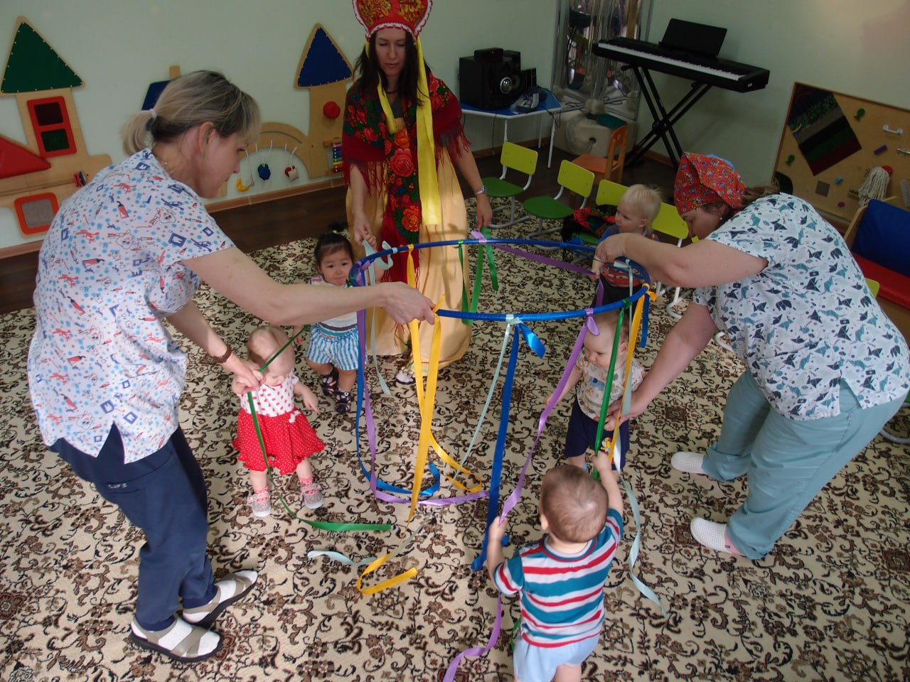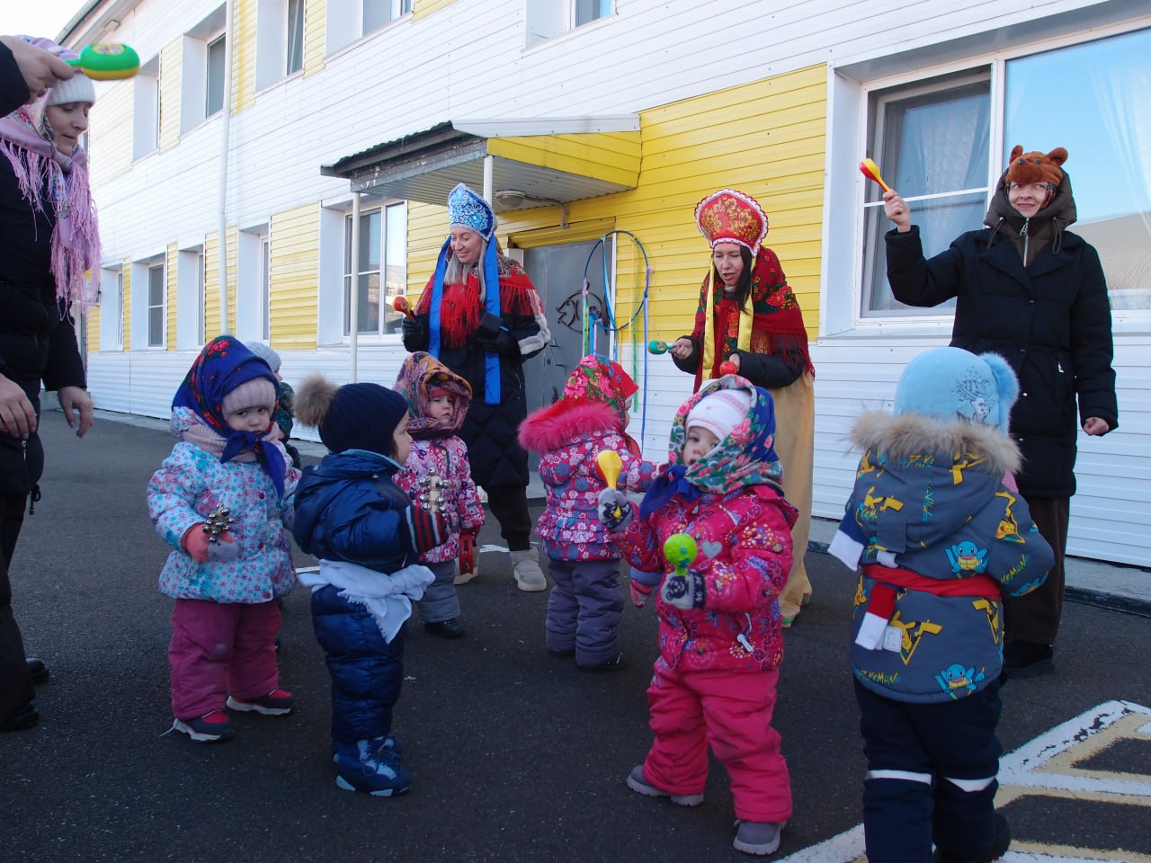 На протяжении всей праздничной недели малыши вместе с мамами и воспитателями играли в русские народные игры, гуляли, водили хороводы, катались на карусели и ели вкусные блины.