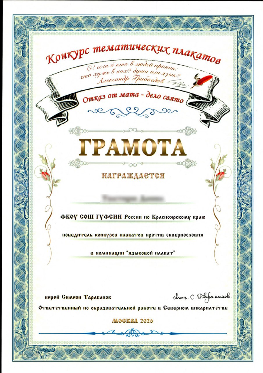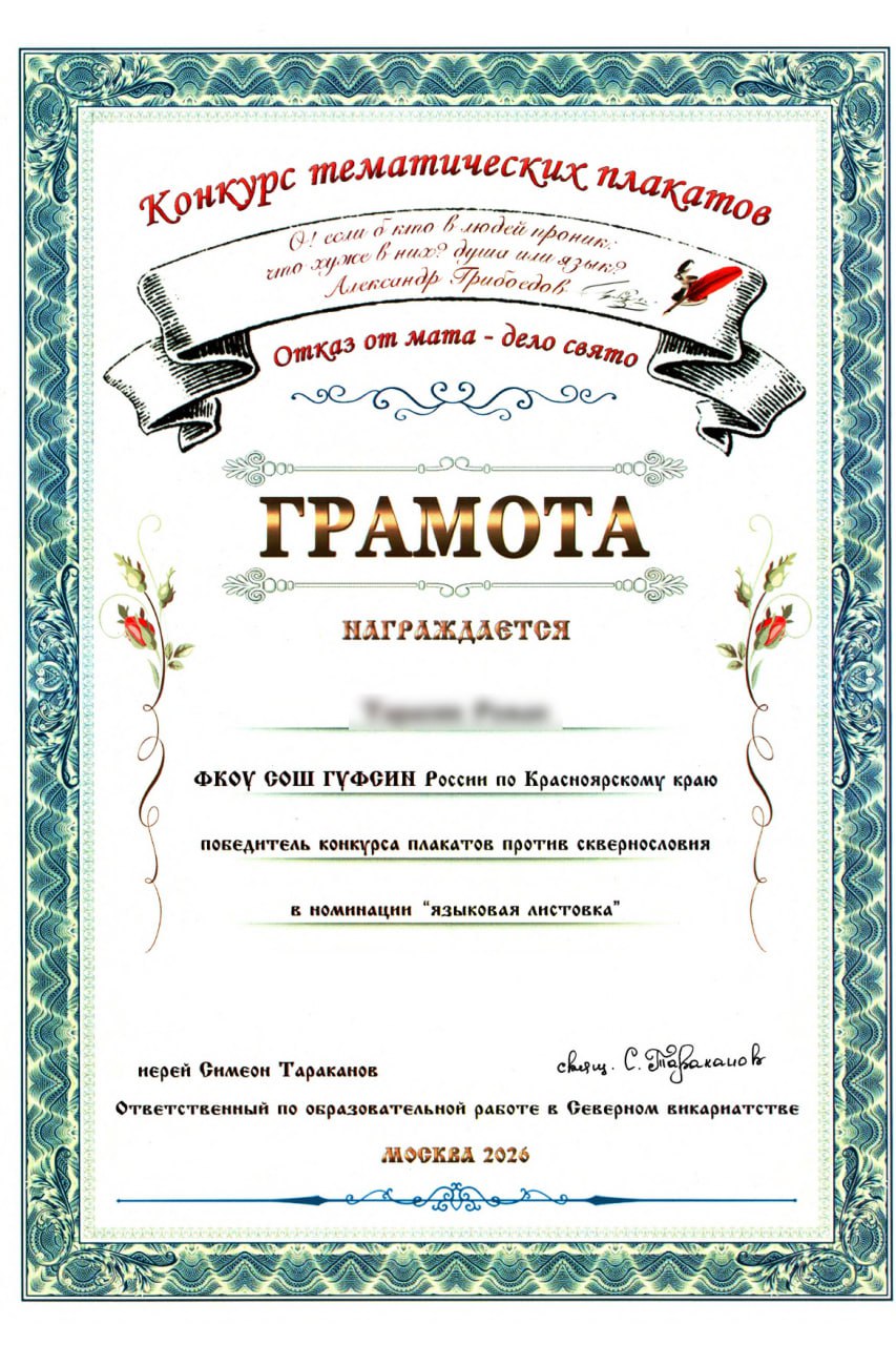 Воспитанники Канской воспитательной колонии вошли в число победителей и призеров православного конкурс плакатов «Отказ от мата – дело свято»