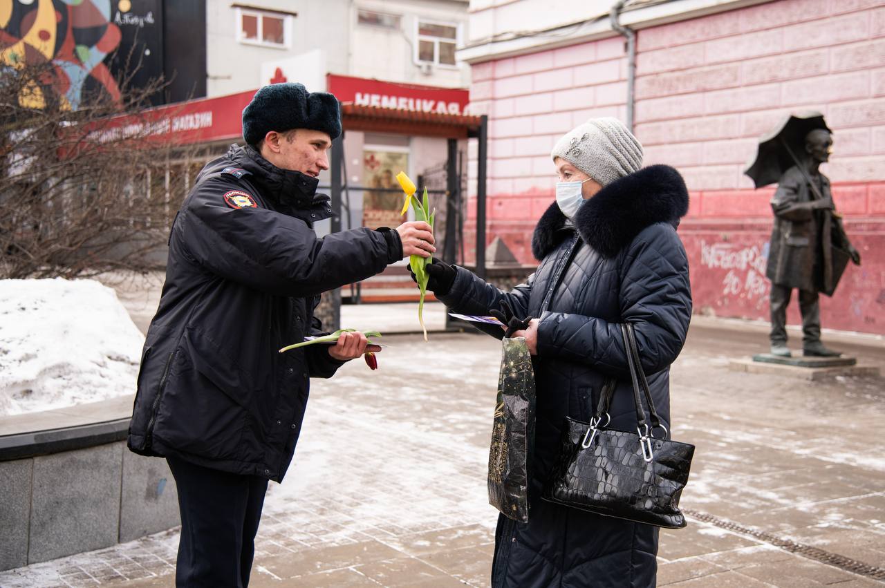 В Красноярске сотрудники полиции и общественники присоединились к Всероссийской акции МВД России «8 Марта – В каждый Дом»