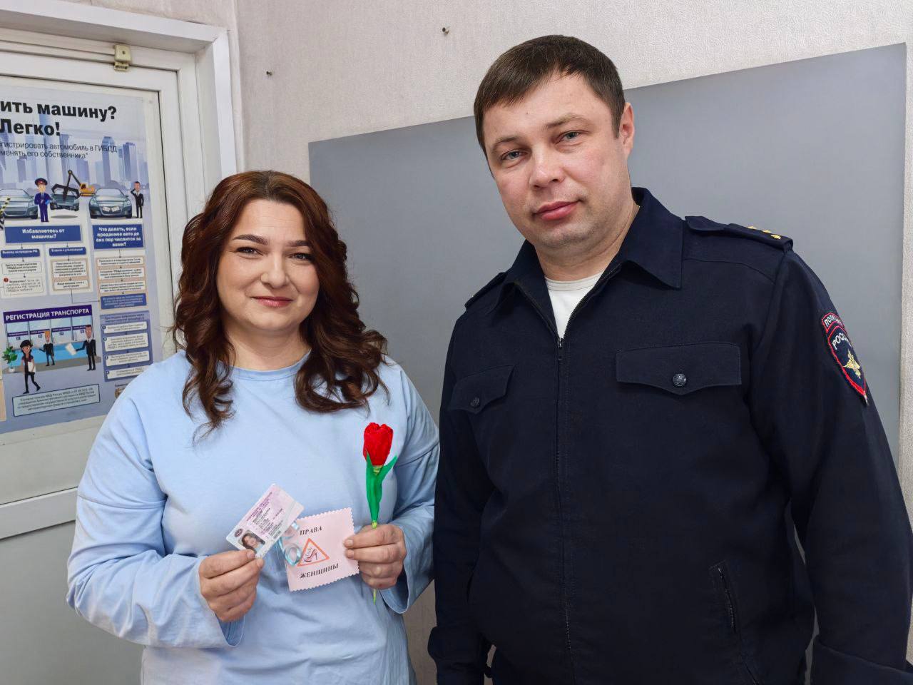 Представительниц прекрасного пола поздравили при получении государственных услуг в отделе Госавтоинспекции Минусинска.