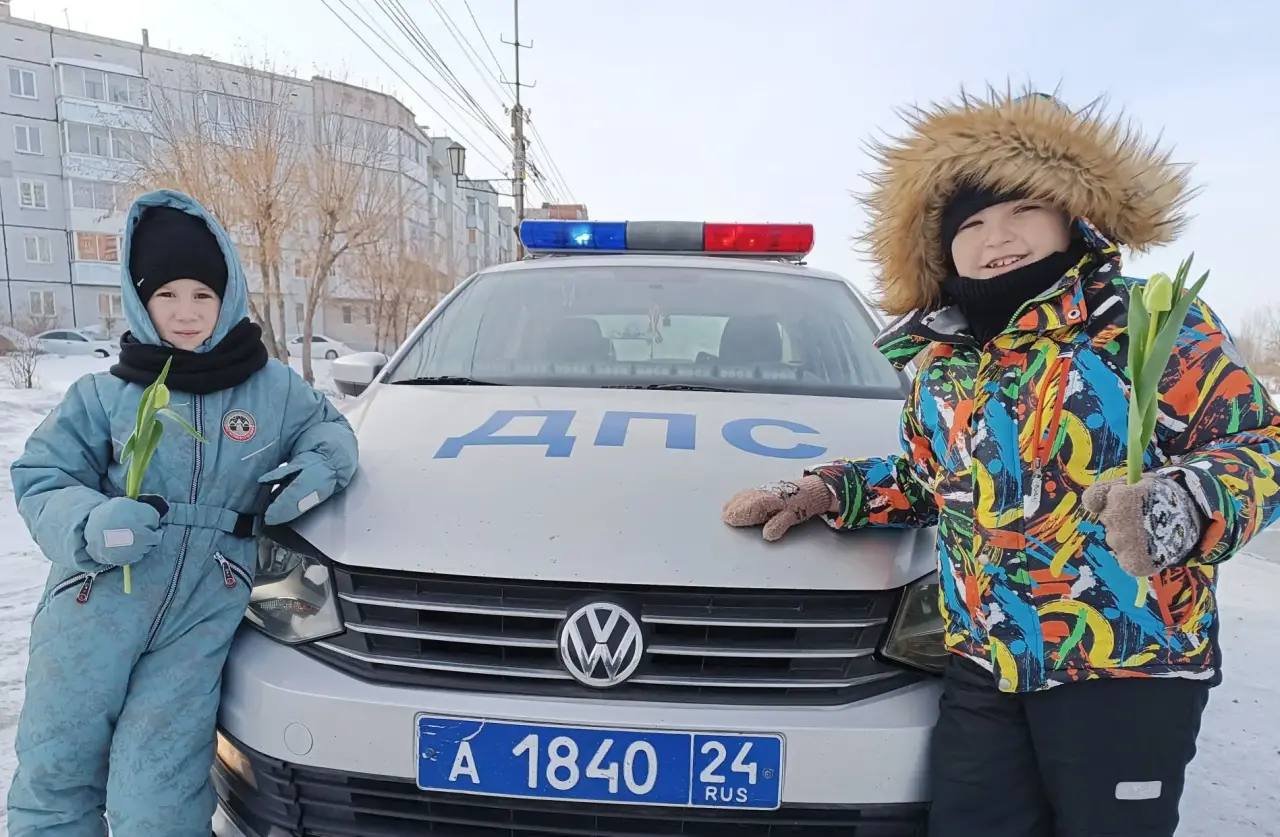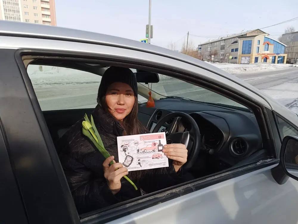 В Ачинске Госавтоинспекторы, общественники и отряд ЮИД вышли на улицы города, чтобы поздравить женщин-водителей с праздником и напомнить о важном