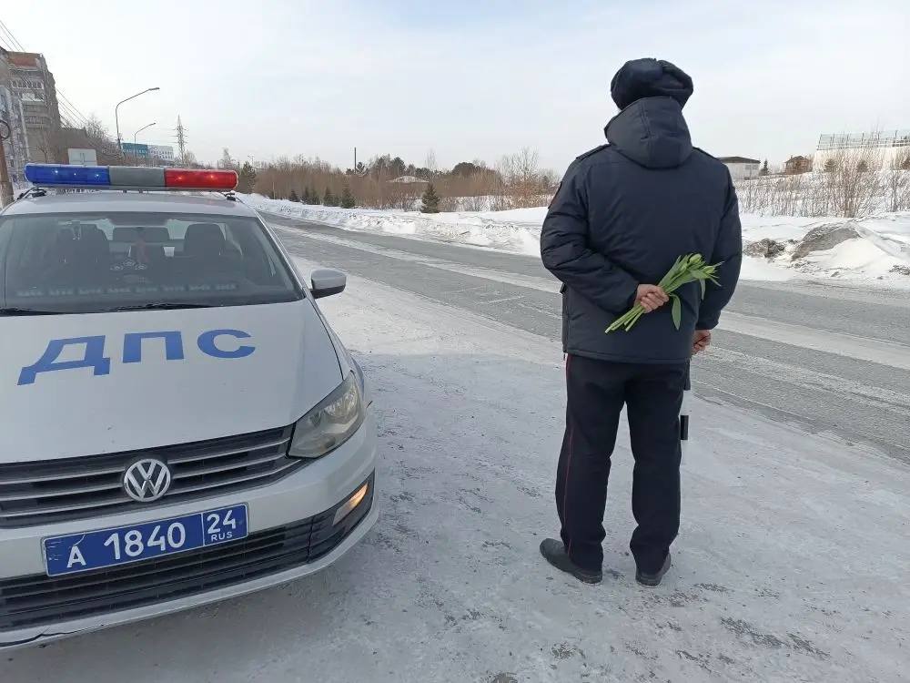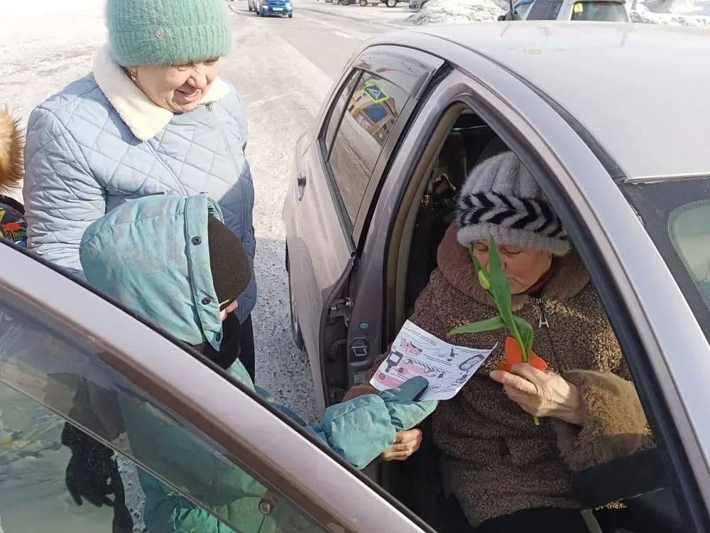 В Ачинске сотрудники Госавтоинспекции, общественники и отряд ЮИД детского сада № 21 присоединились к акции «Цветы для автоледи»