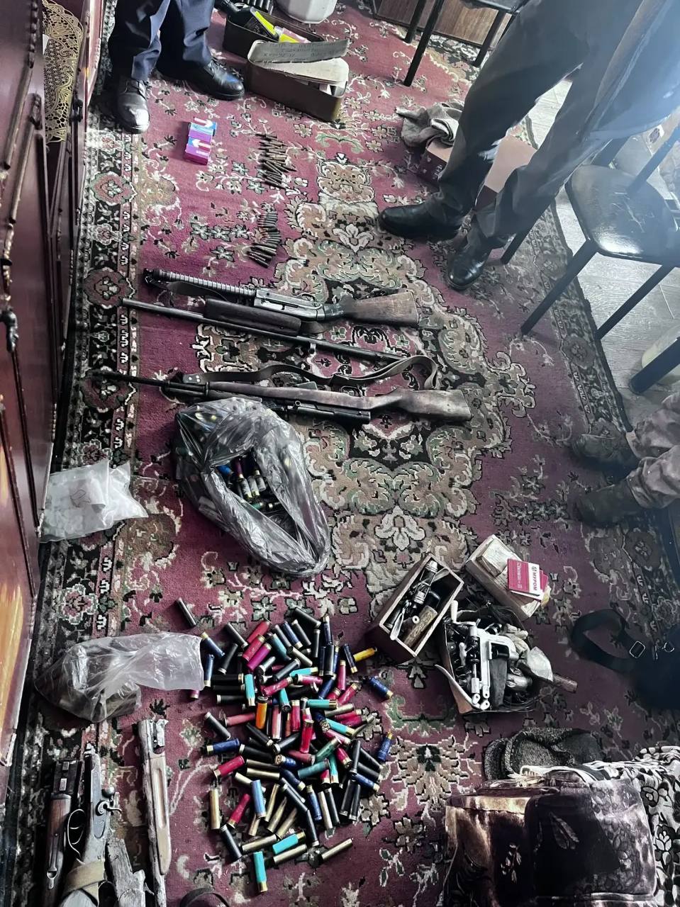В ходе обследования жилого помещения злоумышленника оперативники обнаружили и изъяли 493 патрона от нарезного огнестрельного оружия двух калибров, 293 патрона от гладкоствольного оружия разного калибра, три гладкоствольных ружья, одноствольное ружье, охотничье ружье, пять тар из стекла, жести и пластика с порохом.