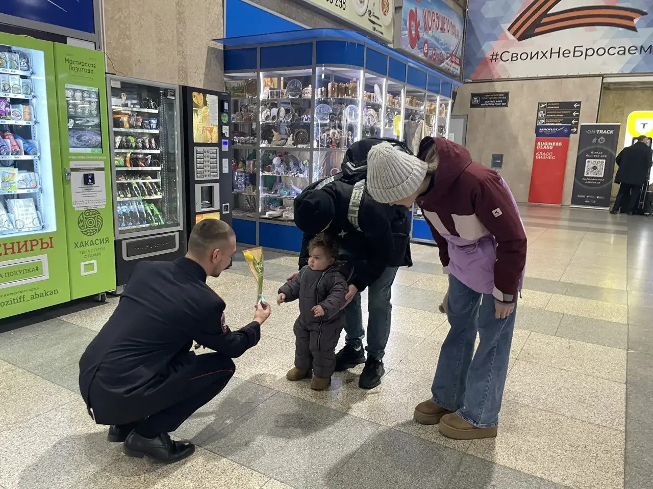 В Абакане сотрудники транспортной полиции Хакасии приняли участие в праздничном концерте на импровизированной сцене в зале ожидания железнодорожного вокзала. Трогательные лирические и зажигательные композиции в исполнении сотрудников правоохранительных органов и с танцевальной поддержкой юных артистов студии «Импульс» вызвали искренний восторг зрителей. Неожиданно ворвавшееся в пассажиропоток концертное выступление силовиков продолжилось поздравительной речью члена общественного совета при Абаканском ЛО МВД России, представителя Красноярской железной дороги Алексея Стельмашенко, поздравившего присутствующих женщин и девушек с весенним праздником.