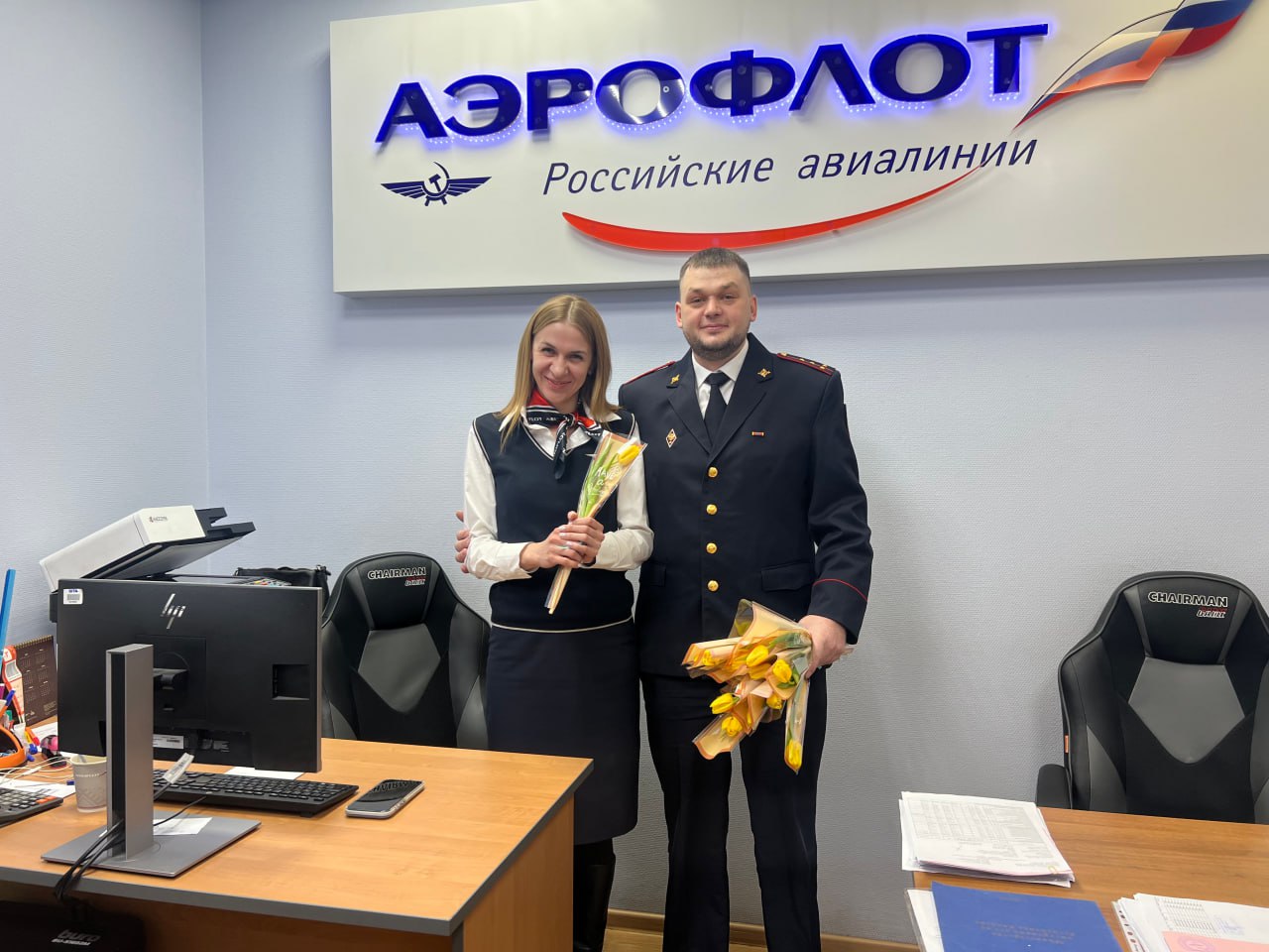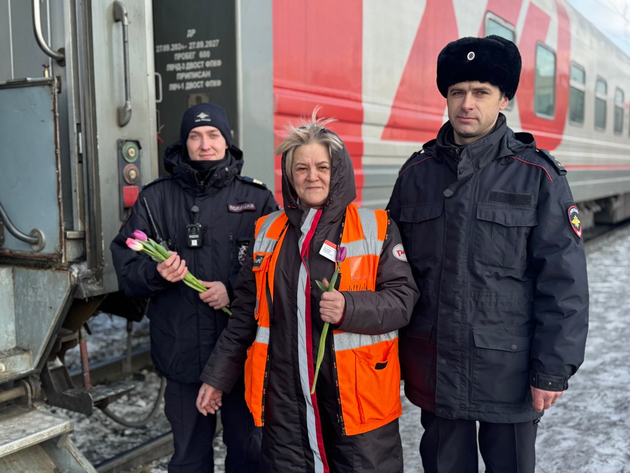 Транспортные полицейские Сибири уже традиционно поздравили с Международным женским днем представительниц транспортной отрасли, которые встретили 8 Марта на рабочем месте. Сотрудники линейного отдела МВД России на станции Иланская преподнесли весенние букеты женщинам-проводникам и начальникам поездов дальнего следования. Искренние пожелания благополучия и радостных путешествий, праздничного настроения и позитивных эмоций звучали и в адрес представительниц прекрасной половины человечества, следующих в качестве пассажиров, и работниц железнодорожного вокзала.