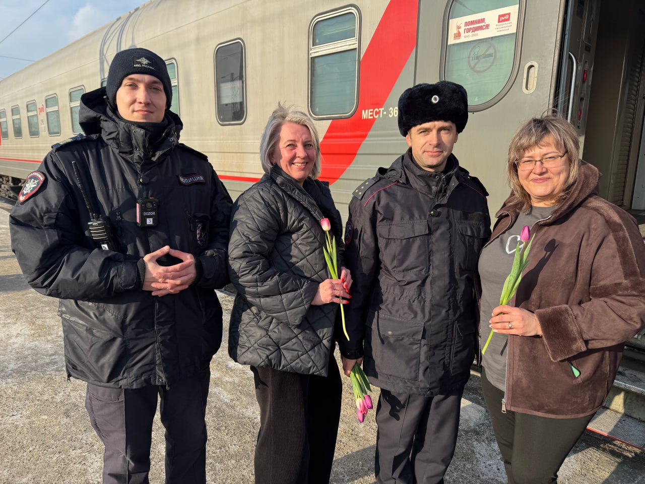 Транспортные полицейские провели акцию 8 для тех, кто встретил весенний праздник в пути
