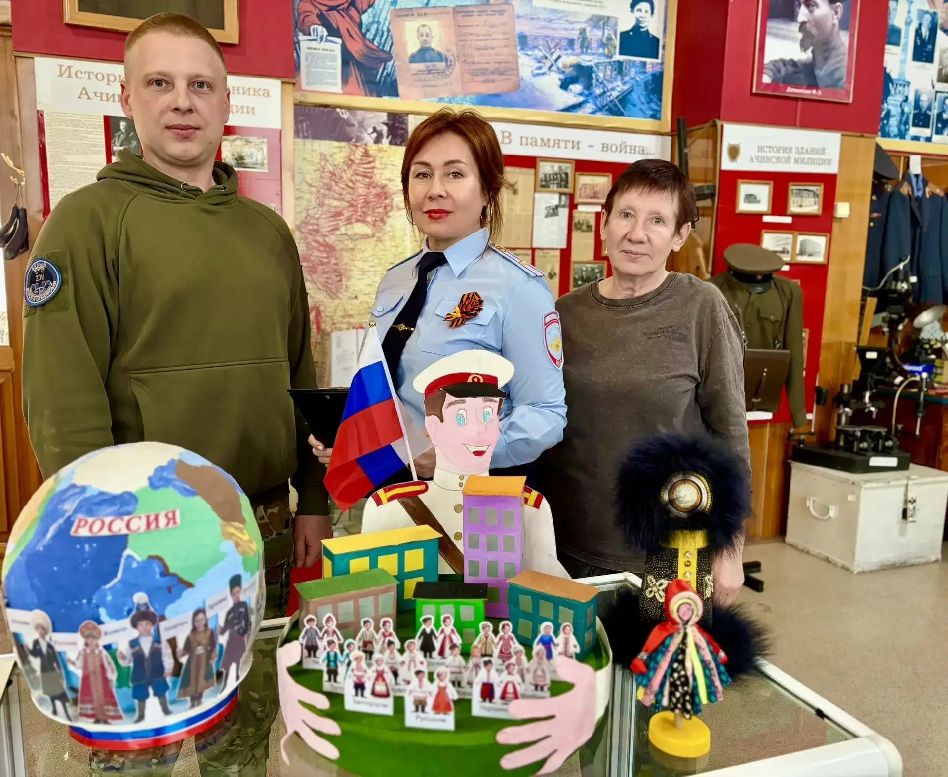 Все работы стали частью особой выставки — рядом с галереей «Они защищали Родину», где ветераны-милиционеры разных национальностей напоминают: вместе мы — сила.